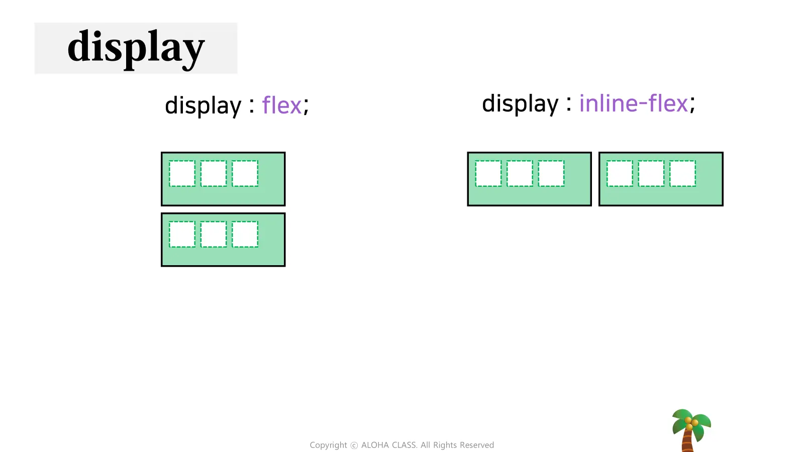 inline-flex | Inline 특성의 Flex Container를 정의 |