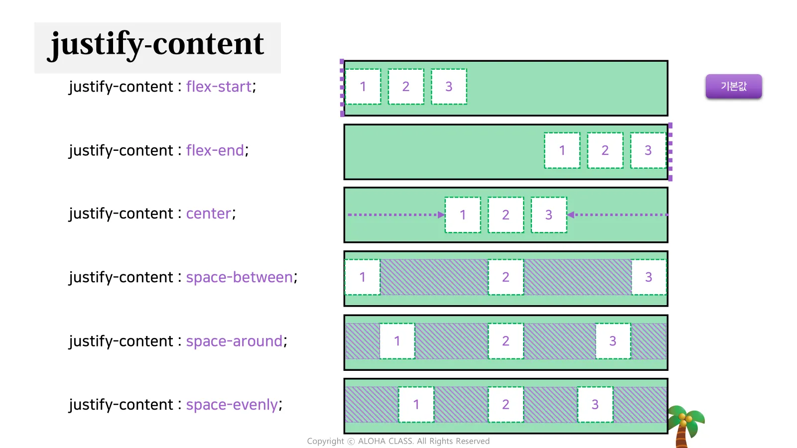 적용 범위: Flex Container의 한 줄에 있는 모든 Flex Item에 적용됩니다.