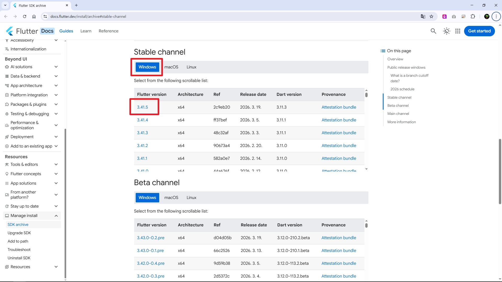 Flutter ๊ณต์์ฌ์ดํธ ๋ค์ด๋ก๋ ๋งํฌ๋ฅผ ํด๋ฆญํฉ๋๋ค. ๊ทธ๋ฆฌ๊ณ ์ด์์ฒด์ (OS)๋ฅผ ์ ํํฉ๋๋ค.