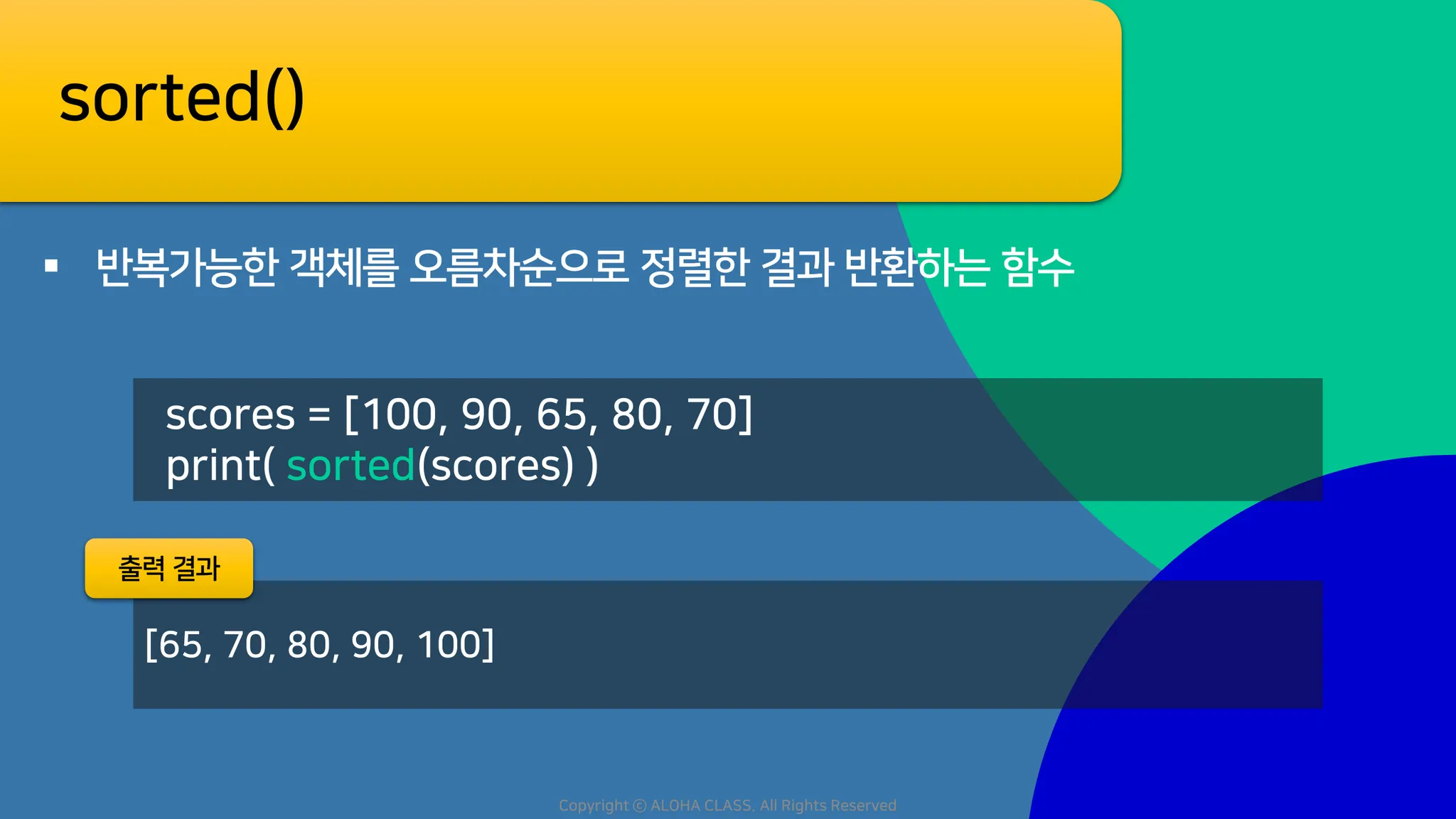 sorted() | λ°λ³΅ κ°λ₯κ°μ²΄λ₯Ό μ€λ¦μ°¨μ μ λ ¬νμ¬ λ°ν |