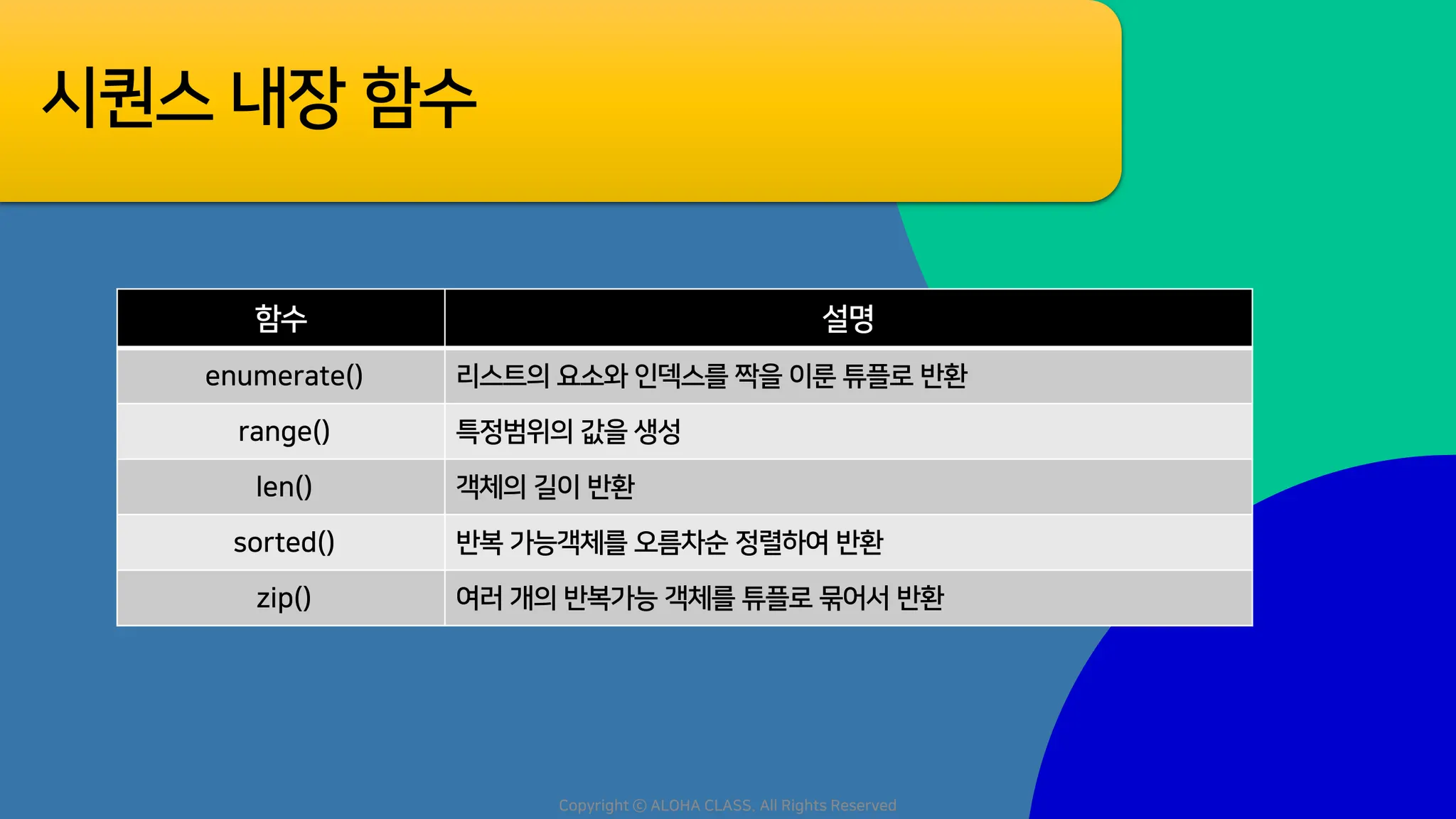 μνμ€ λ΄μ₯ ν¨μ : enumerate(), range(), len(), sorted(), ...