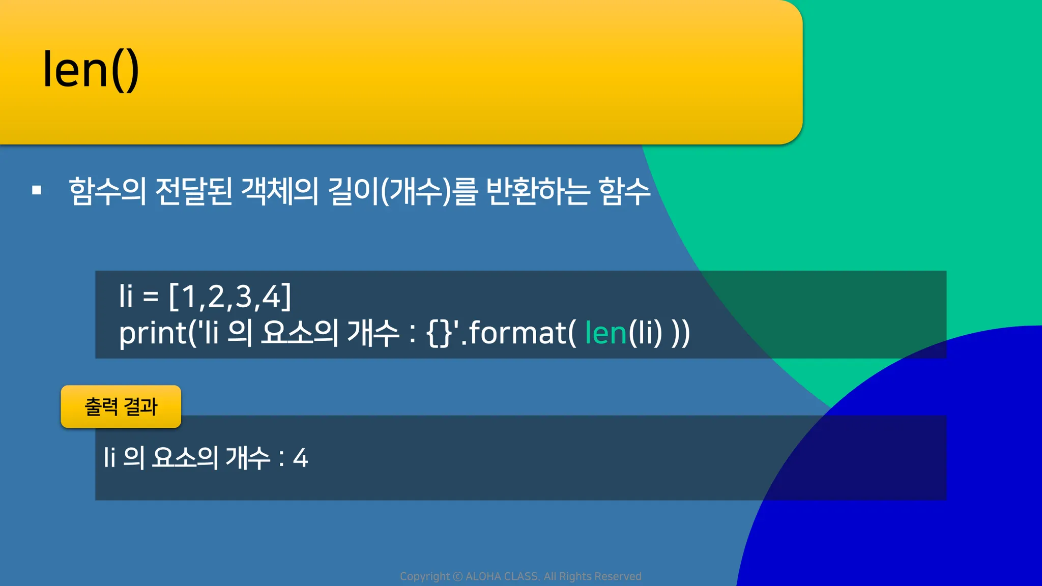 len() | κ°μ²΄μ κΈΈμ΄ λ°ν |
