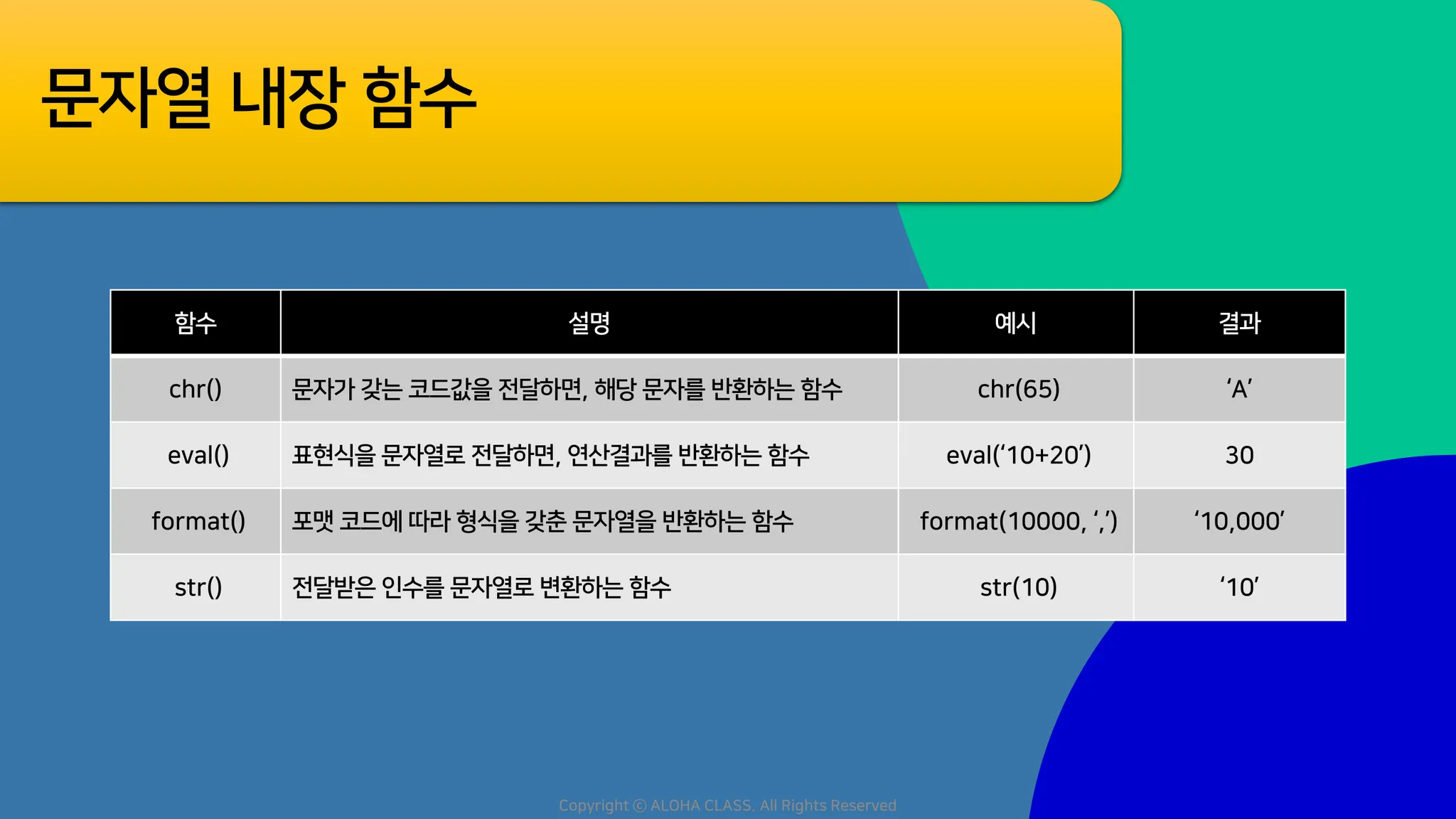 λ¬Έμμ΄ λ΄μ₯ν¨μ : chr(), eval(), format(), str()