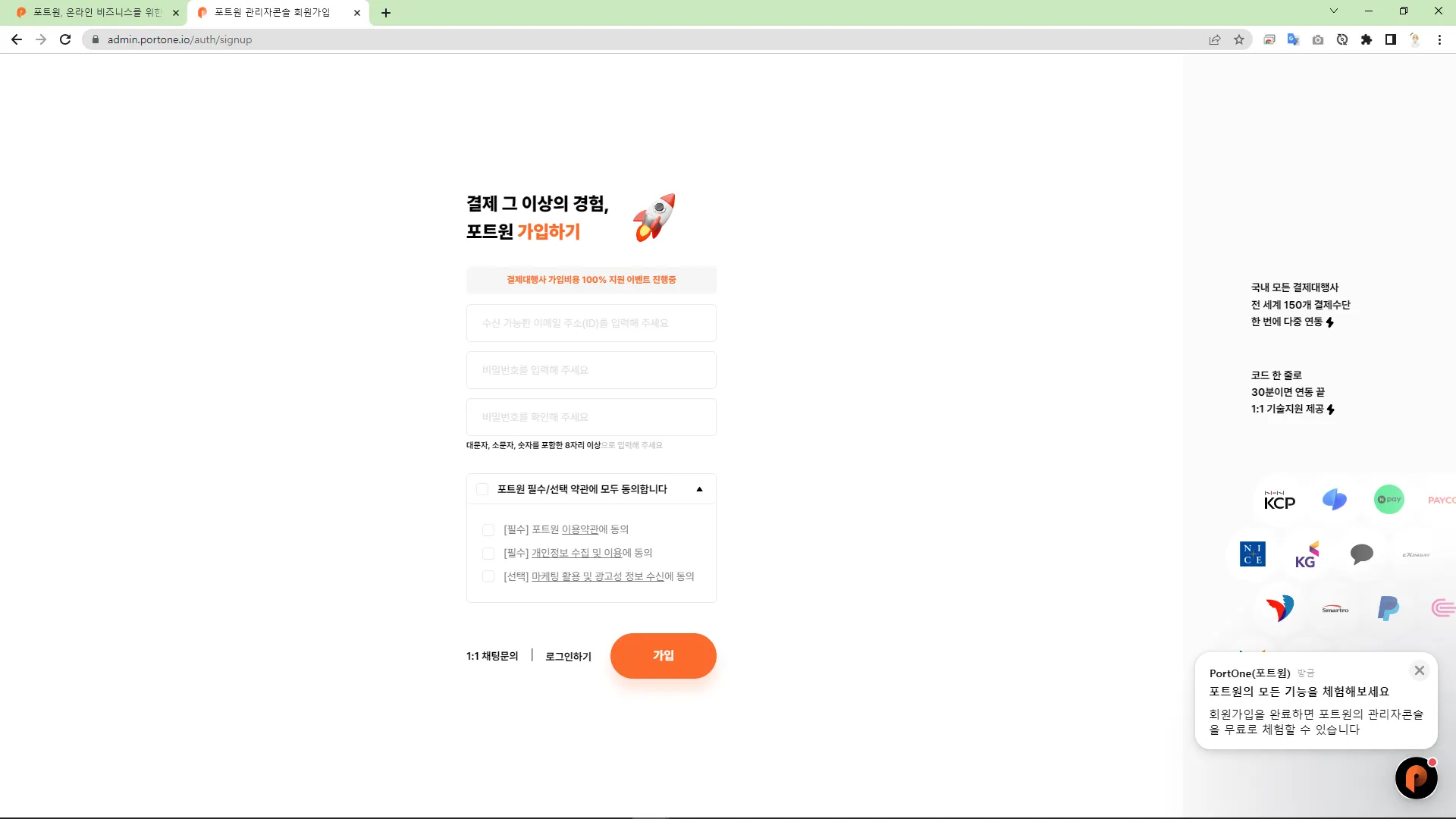 <h3>PortOne PG์ฌ ์ฐ๋ํ๊ธฐ</h3>
