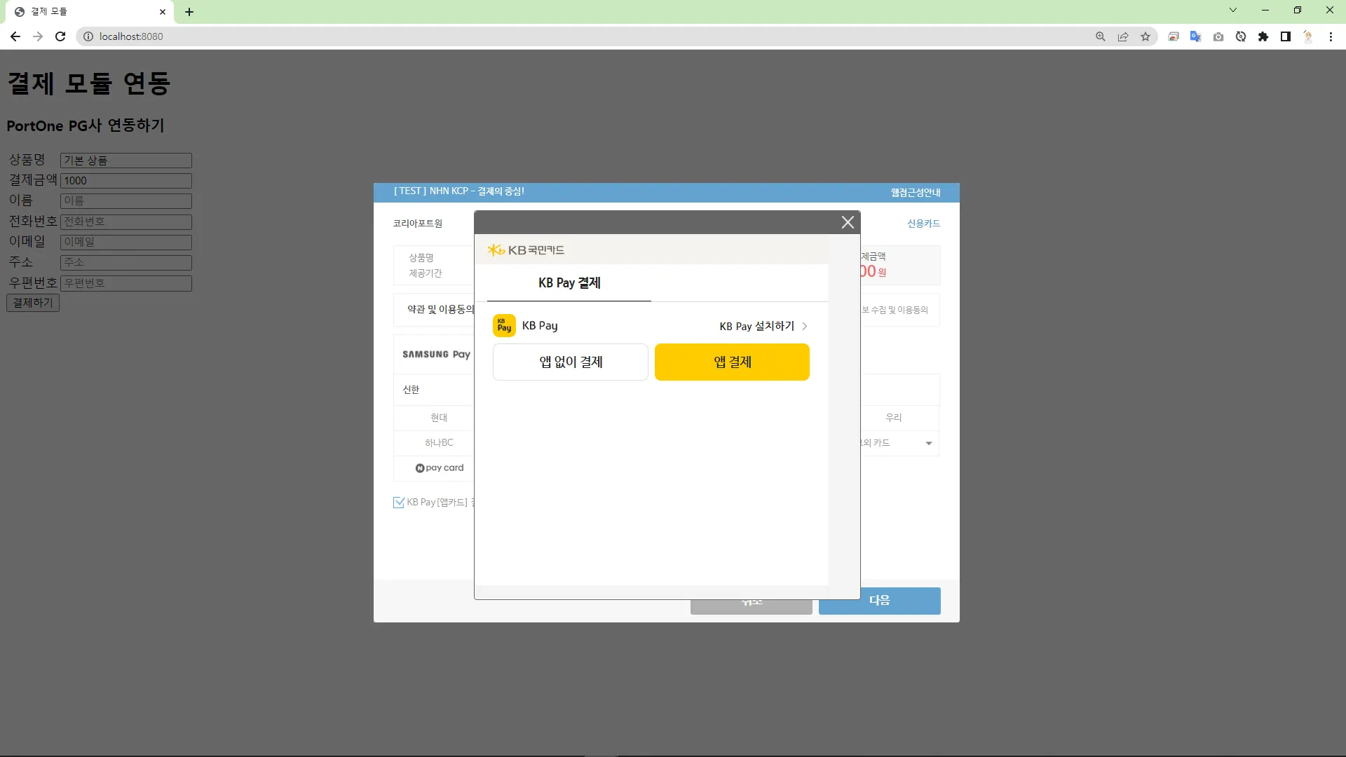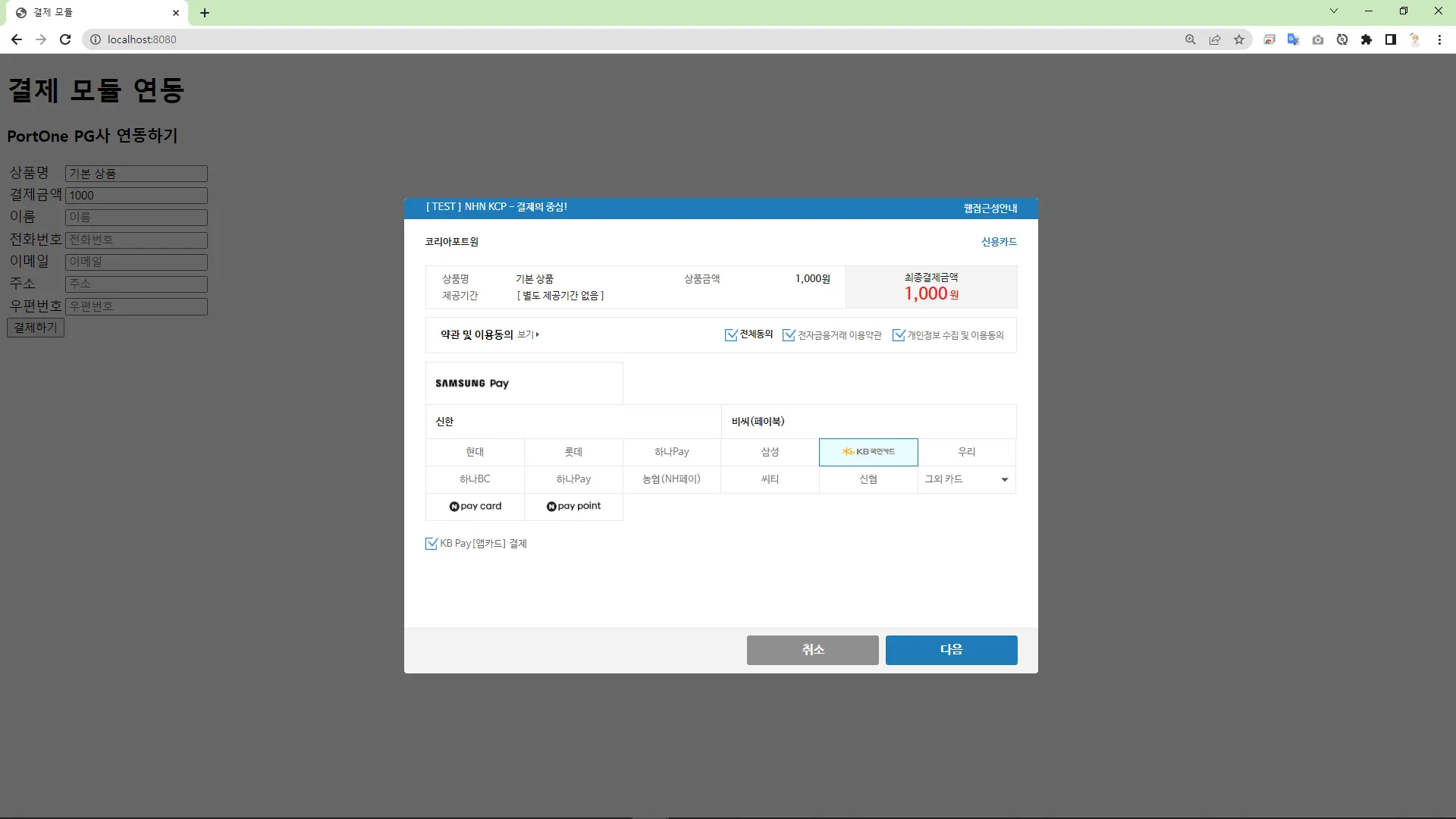 <h1>๊ฒฐ์ ๋ชจ๋ ์ฐ๋</h1>