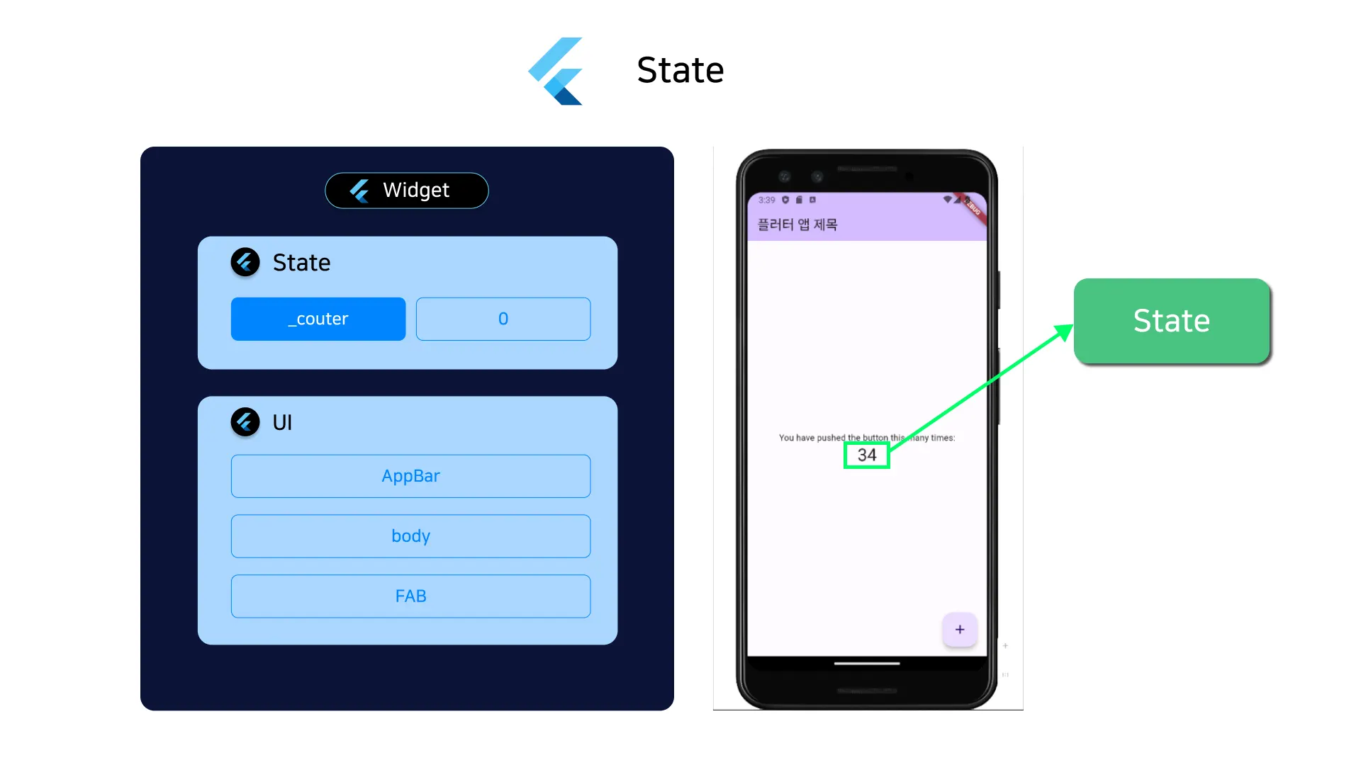 ํ๋ฌํฐ์ ๊ฐ์ฅ ๊ธฐ๋ณธ ์์์ธ Widget ๊ณผ State ๋ฅผ ์์๋ด