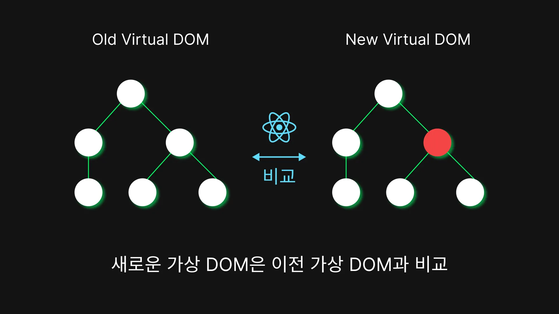 : ์๋ก์ด ๊ฐ์ DOM์ ์ด์ ๊ฐ์ DOM๊ณผ ๋น๊ต๋ฉ๋๋ค. ์ด ๋น๊ต๋ฅผ ํตํด ๋ณ๊ฒฝ๋ ๋ถ๋ถ์ด ์๋ณ๋๊ณ , ์ค์ DOM์ ์ ์ฉํด์ผ ํ ์ต์ํ์ ์
