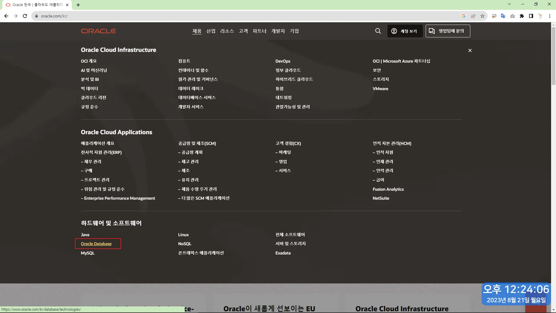 3. [์ ํ] ๋ฉ๋ด > Oracle Database