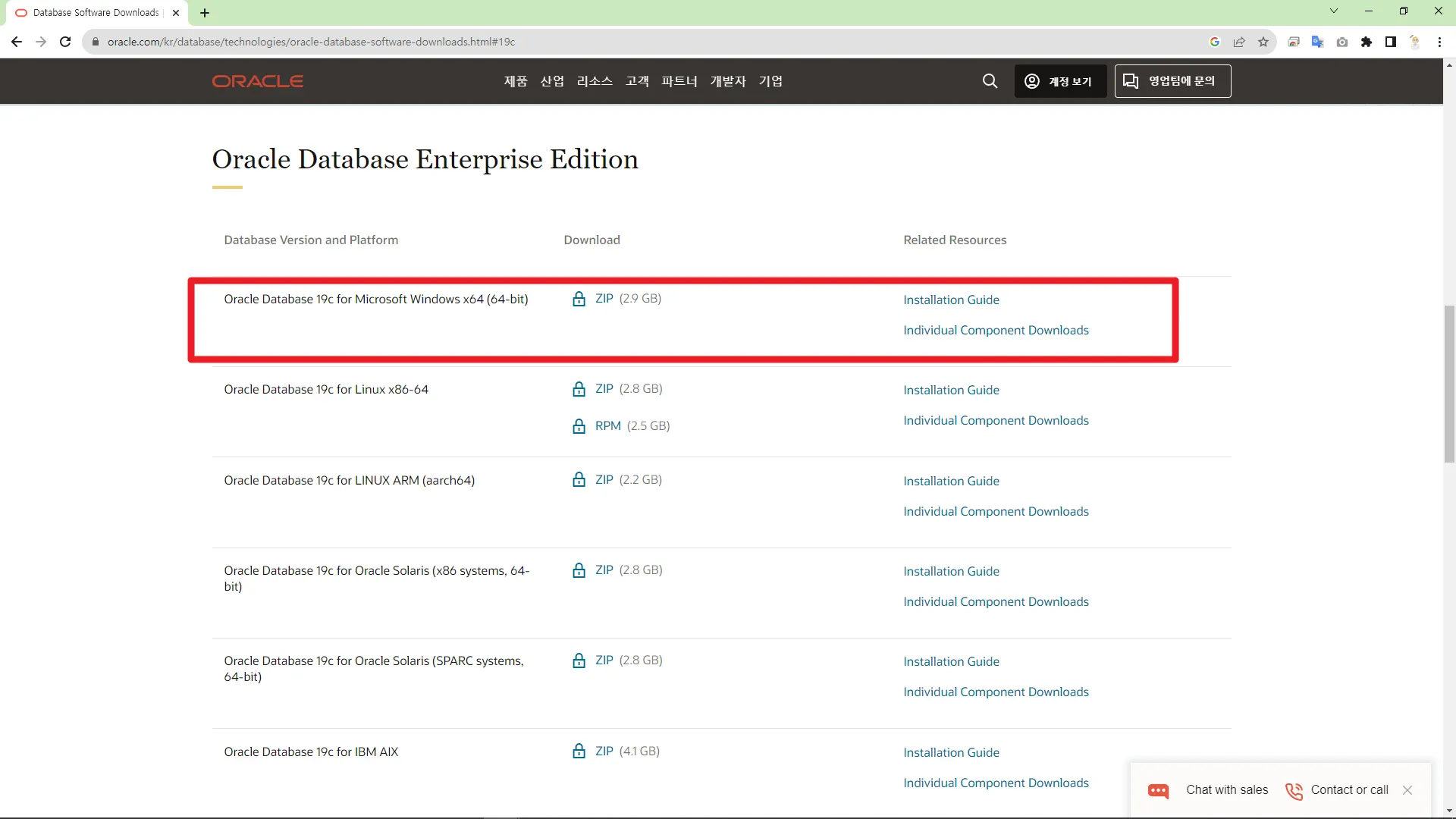 4. Oracle Database 19c ๋ค์ด๋ก๋