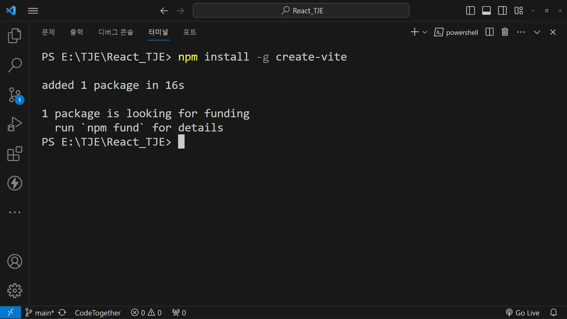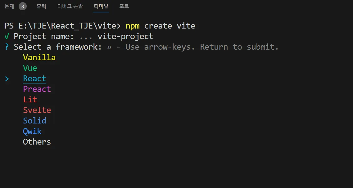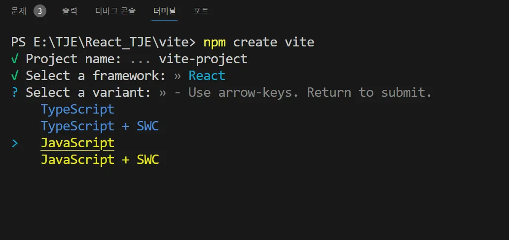 create-vite ํ๋ก์ ํธ์ด๋ฆ --template react