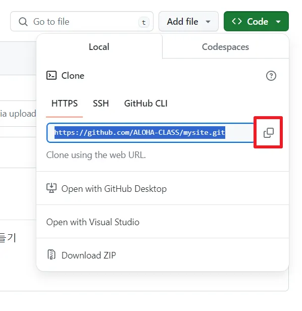 git remote add origin https://github.com/ALOHA-CLASS/λ ν¬μ§ν 리μ΄λ¦