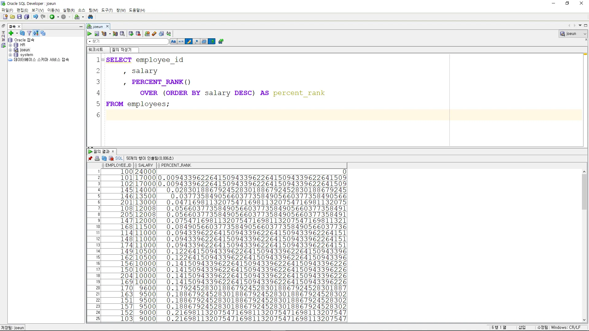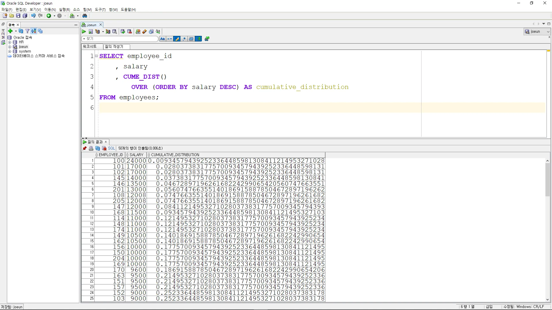 OVER (ORDER BY salary DESC) AS cumulative_distribution