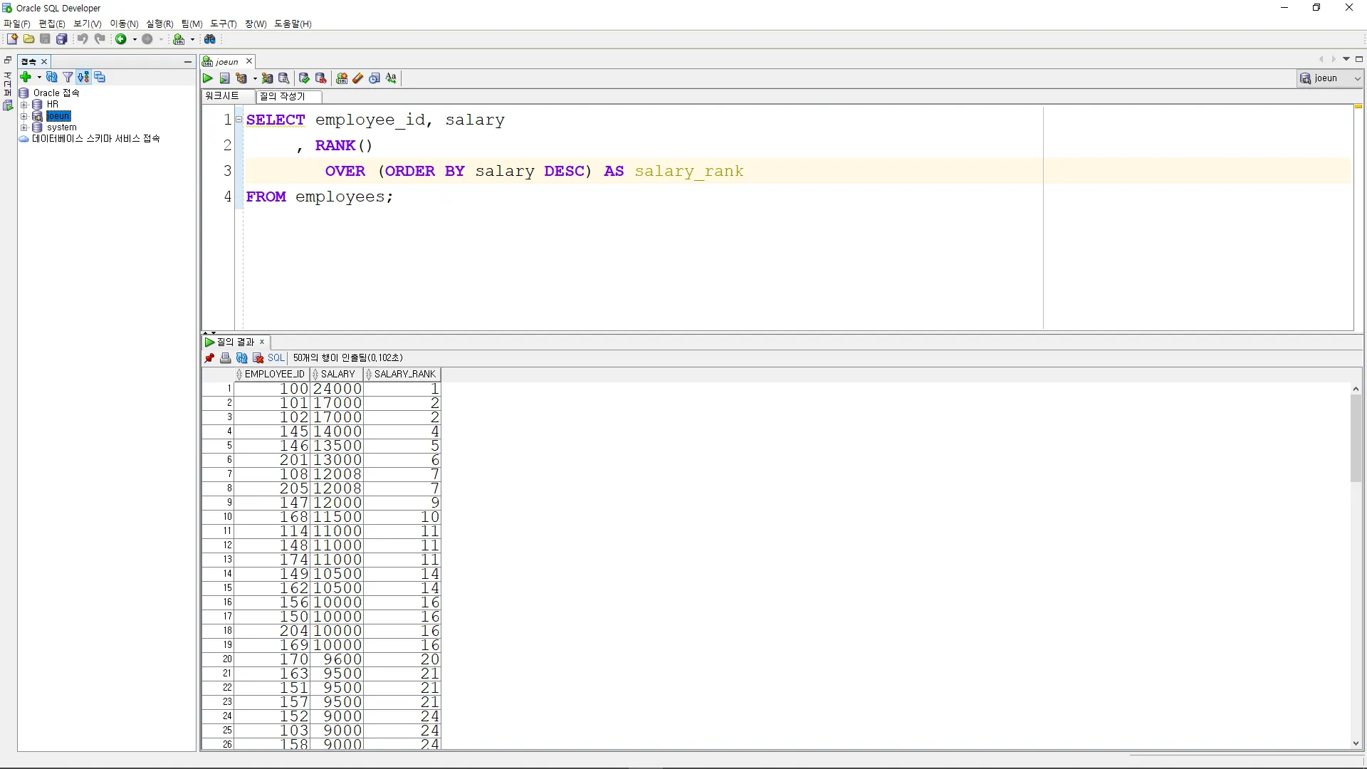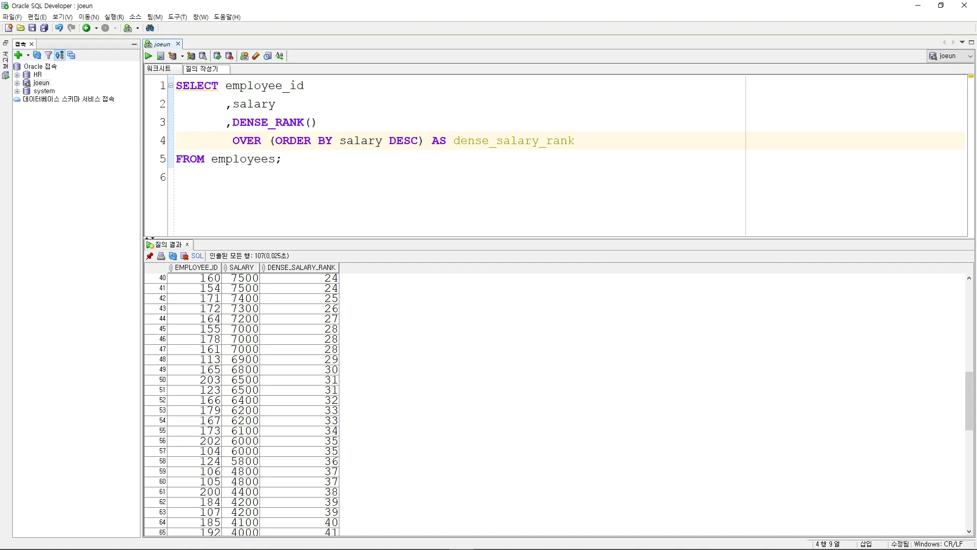 OVER (ORDER BY salary DESC) AS dense_salary_rank