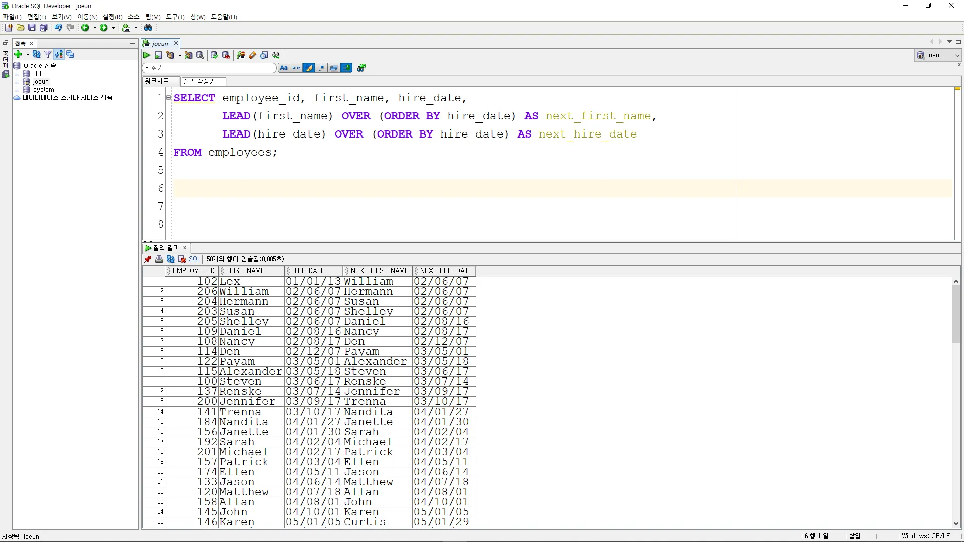 LEAD(first_name) OVER (ORDER BY hire_date) AS next_first_name,