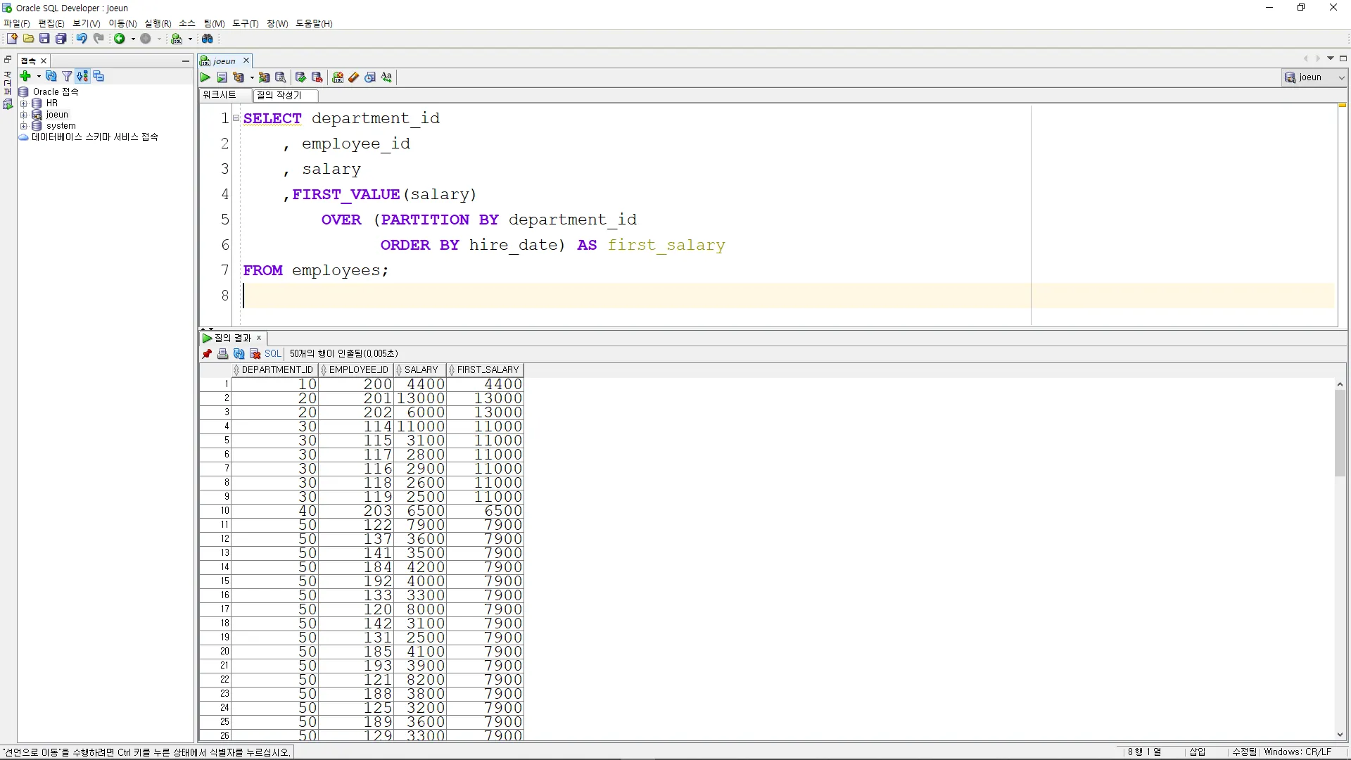 FIRST_VALUE | κ·Έλ£Ή λ΄μμ 첫 λ²μ§Έ νμ κ°μ λ°νν©λλ€. |