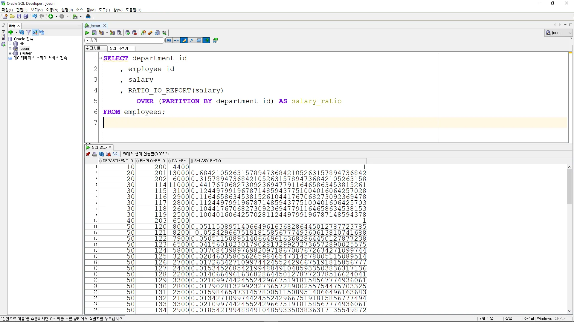 RATIO_TO_REPORT | κ²°κ³Ό μ§ν©μ κ° κ·Έλ£Ήμμ νμ¬ νμ λΉμ¨μ κ³μ°ν©λλ€. |