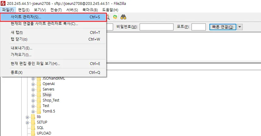 FTP νλ‘κ·Έλ¨ μ€ν (FileZilla)