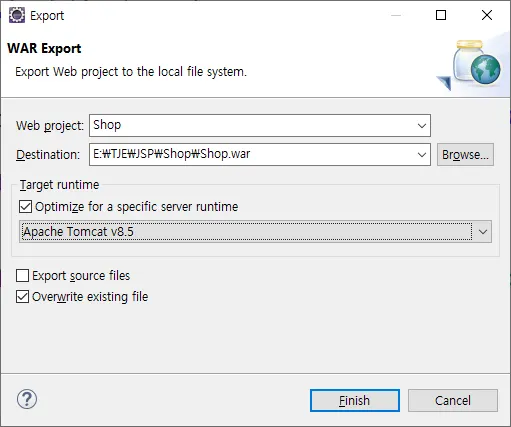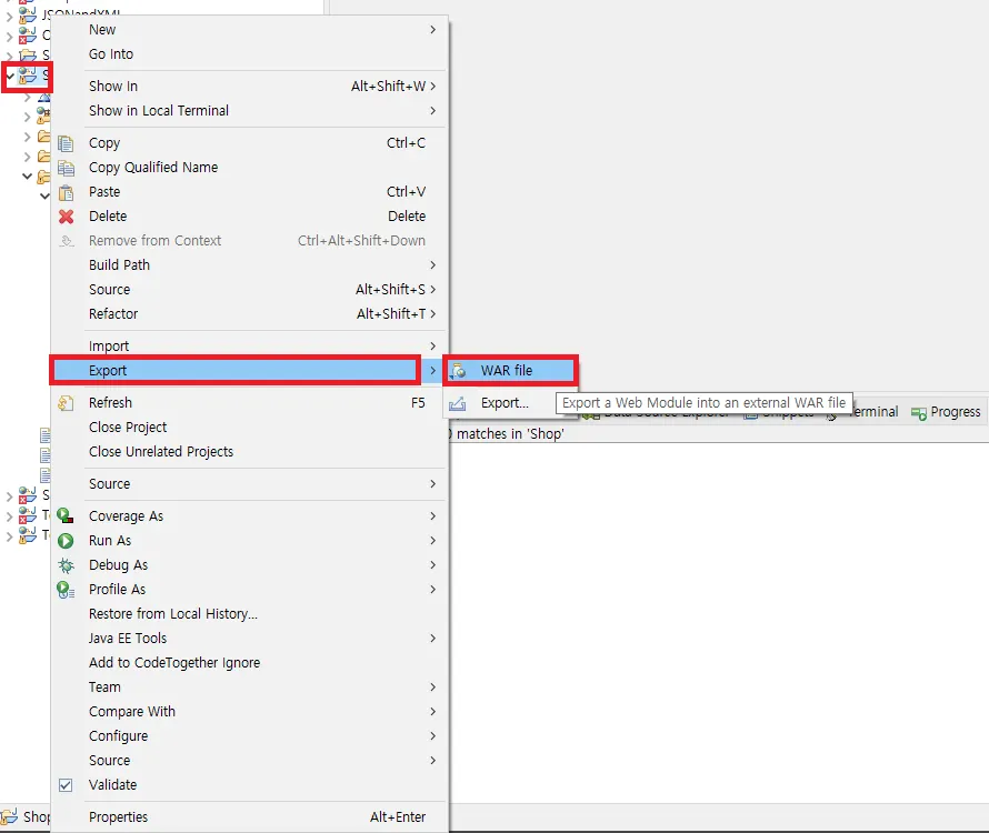 JSP - Dynamic Web Project λ‘ κ°λ°ν νλ‘μ νΈλ₯Ό λ°°ν¬ νμΌ war λ‘ μμ±νκ³