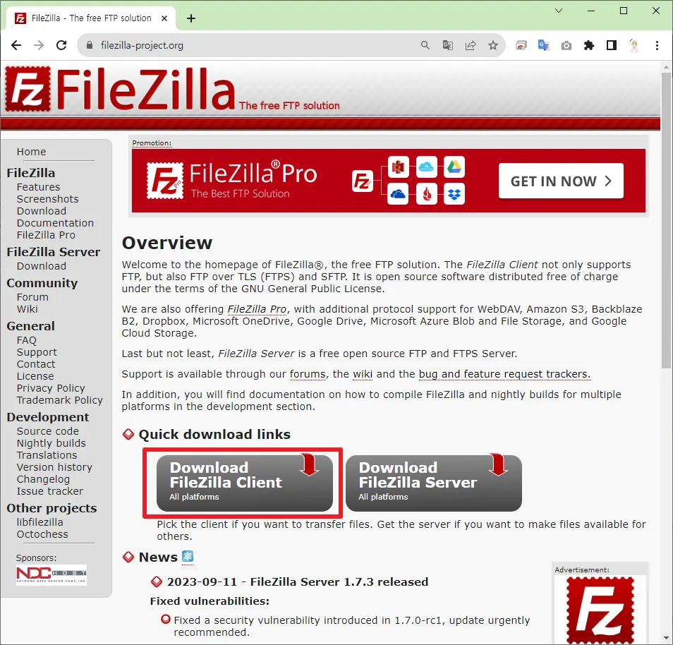 FileZilla λ€μ΄λ‘λ