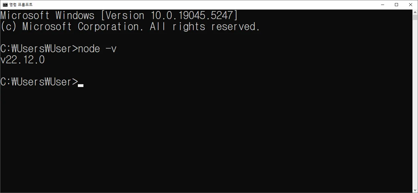 node -v (๋ฒ์ ํ์ธ ๋ช