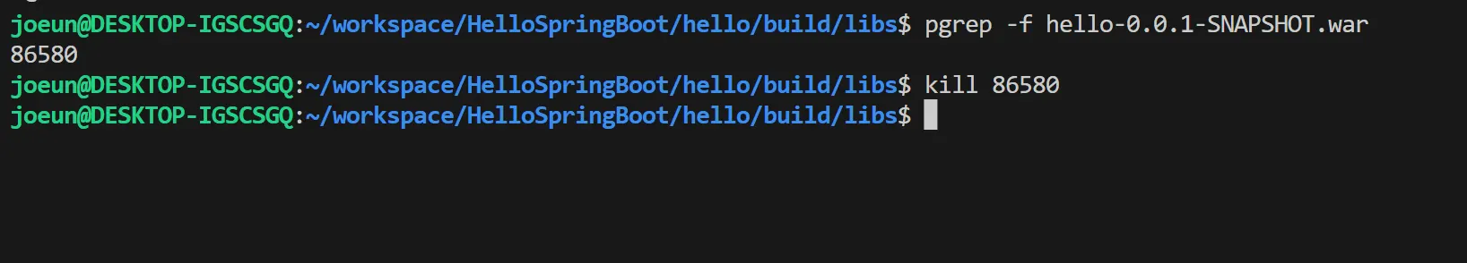 pgrep -f hello-0.0.1-SNAPSHOT.war