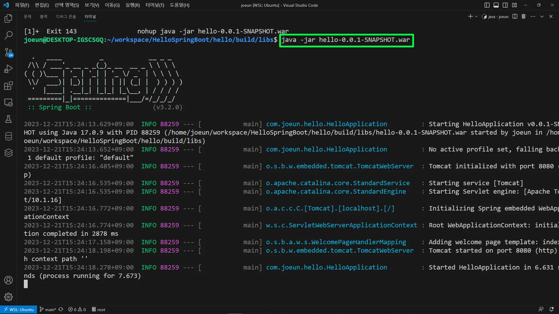 nohup java -jar hello-0.0.1-SNAPSHOT.war &