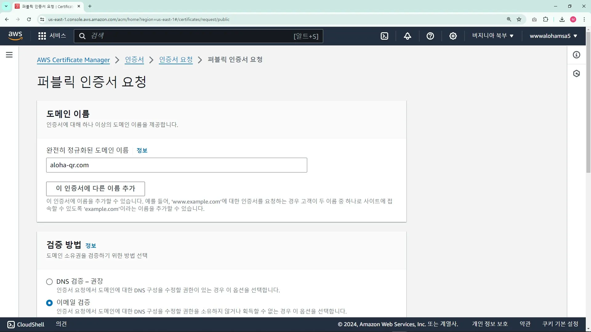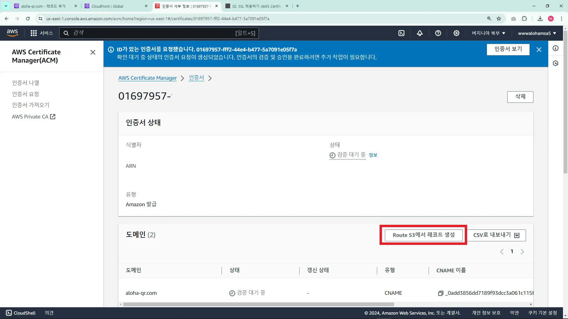1. CloudFront์ ์ธ์ฆ์ ์ฐ๊ฒฐ