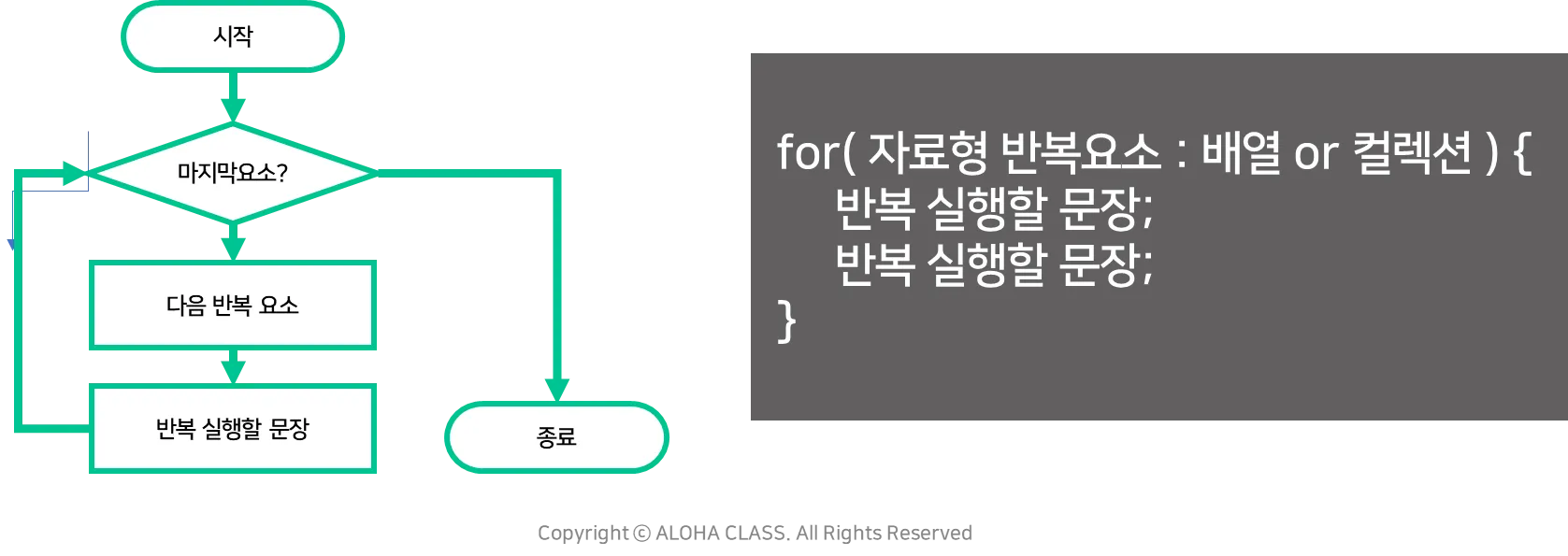 배열이나 컬렉션의 모든 요소를 순회하는 반복문