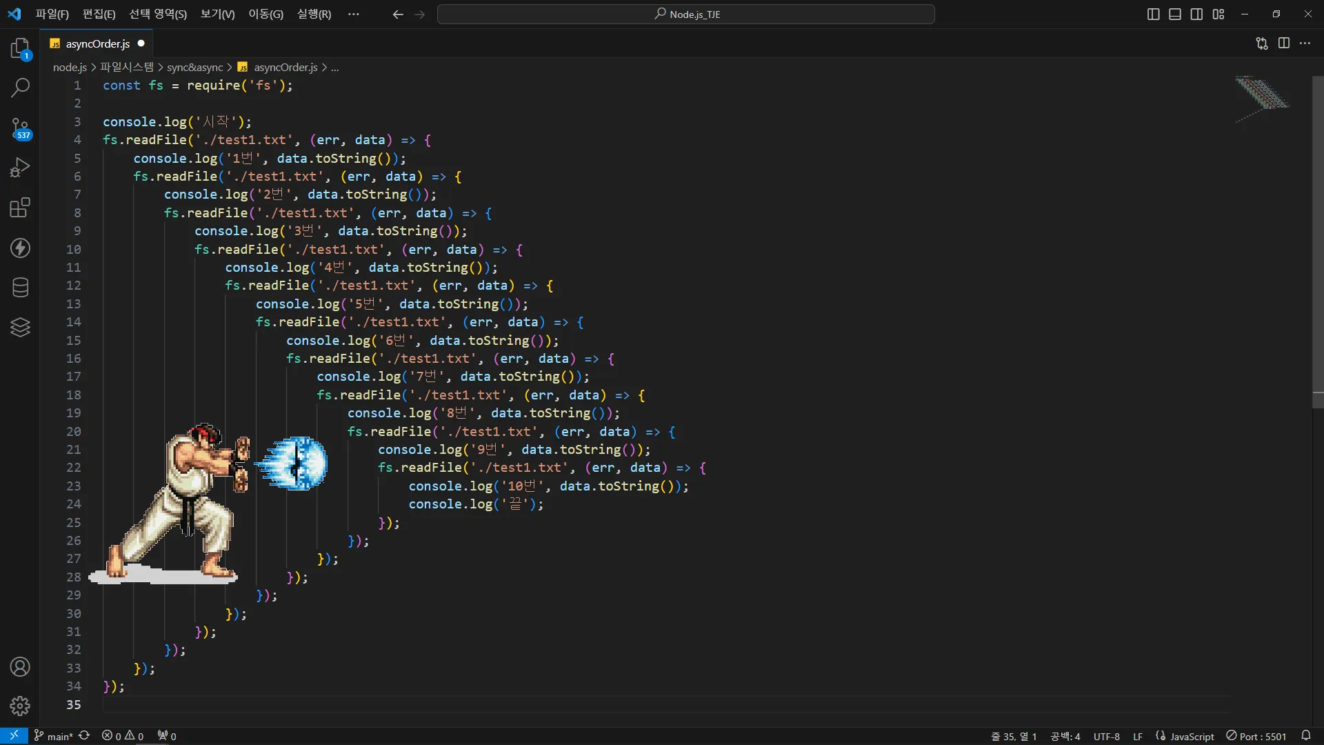 ์์๋ฅผ ์ ์งํ๊ธฐ ์ํ, ์ฝ๋ฐฑ ๊ธฐ๋ฐ ๋น๋๊ธฐ์ ํ์ผ ์ ๋ ฅ
