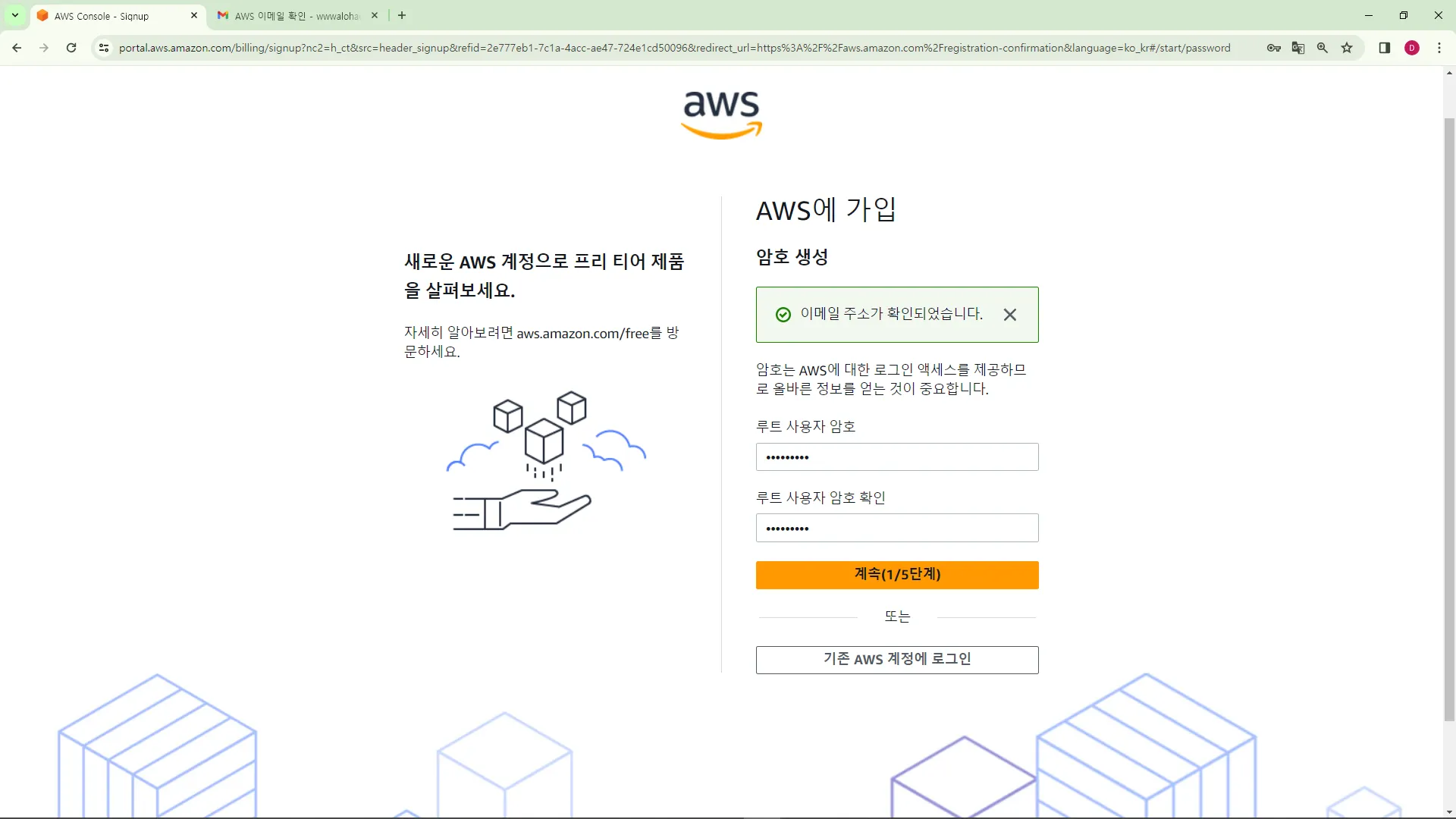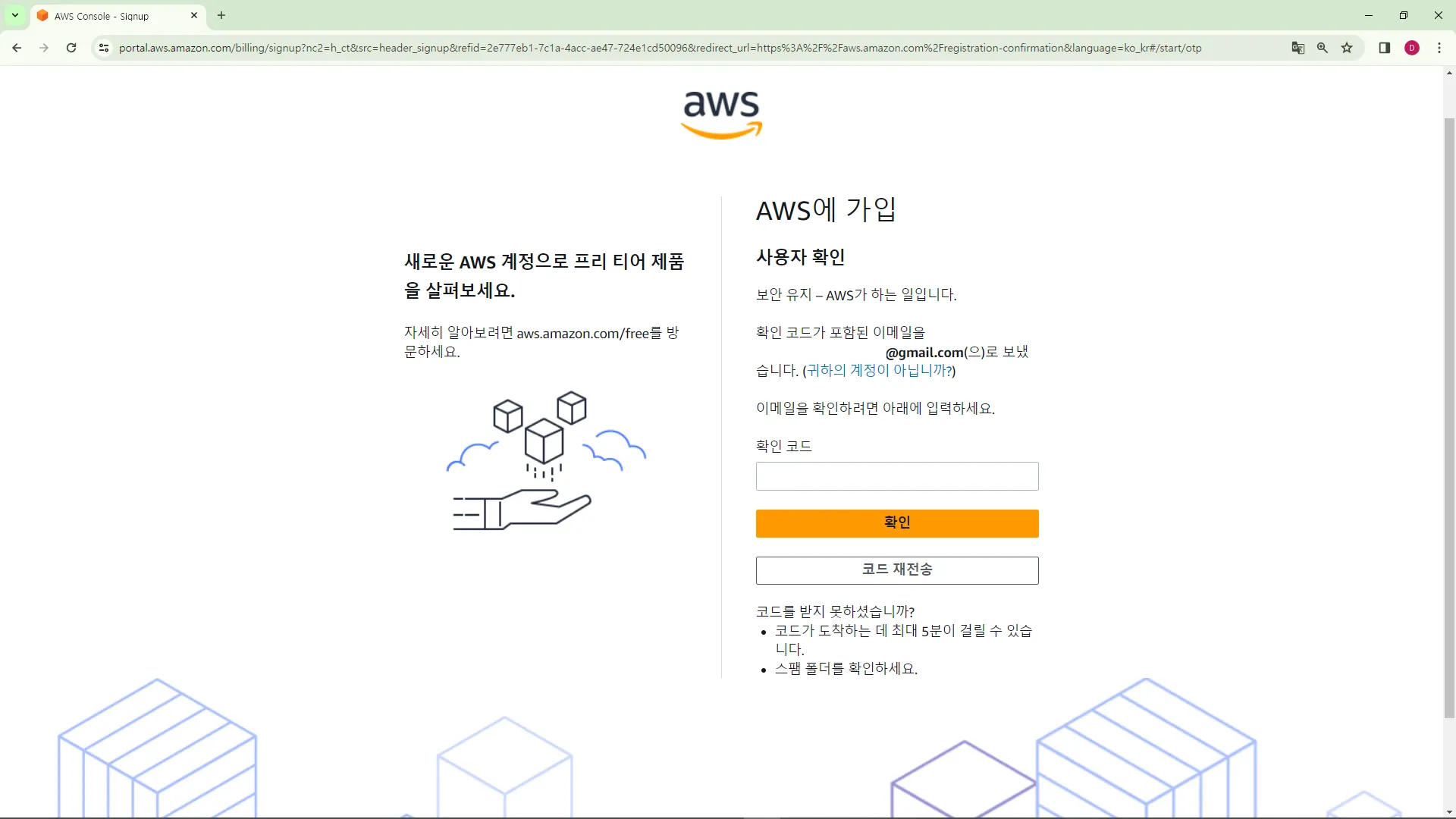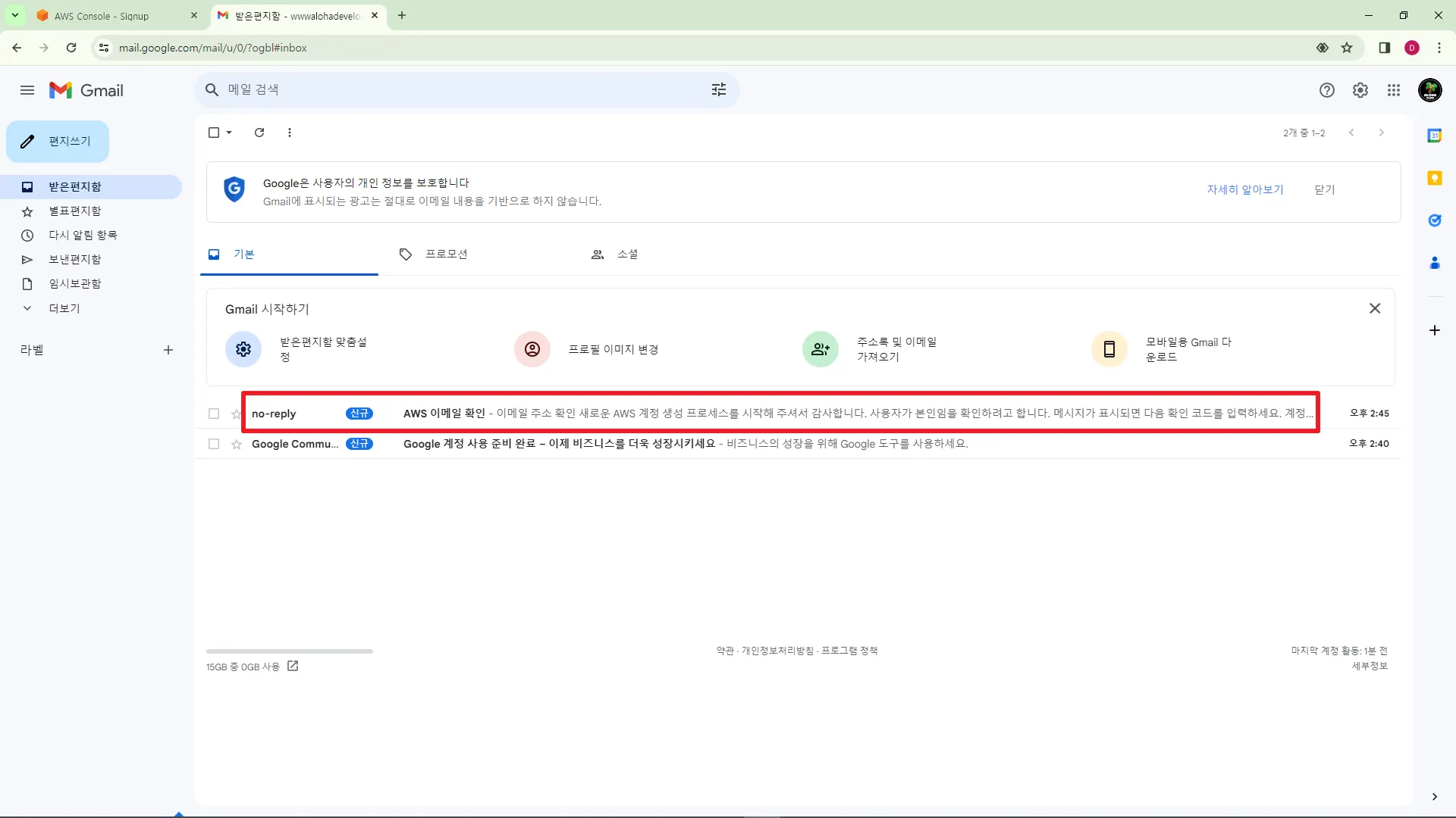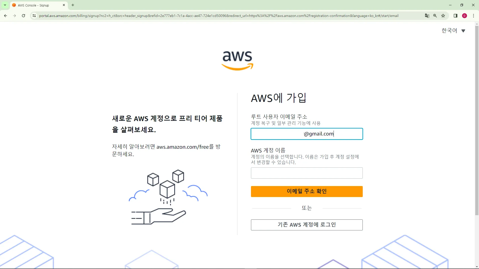 ์๋ก์ด ๊ตฌ๊ธ ๊ณ์ ์ ๋ง๋ค์ด, AWS์ ์ ๊ณ์ ์ผ๋ก ์ด๋ฉ์ผ ํ์๊ฐ์