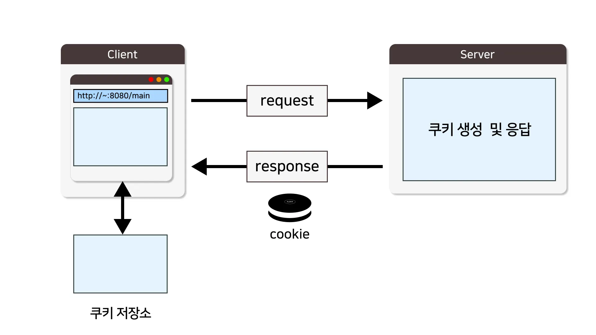 ์ฟ ํค๋ ์๋ฒ ์ธก์์ ๊ฐ์ฒด๋ก ์์ฑํ๊ณ ์๋ต(response) ๋ฉ์์ง์ ๋ด์์ ํด๋ผ์ด์ธํธ๋ก ๋ณด๋ด์ฃผ์ด์ผ ํด๋ผ์ด์ธํธ์ ์ฟ ํค ์ ์ฅ์์ ์ ์ฅํ๋ค.