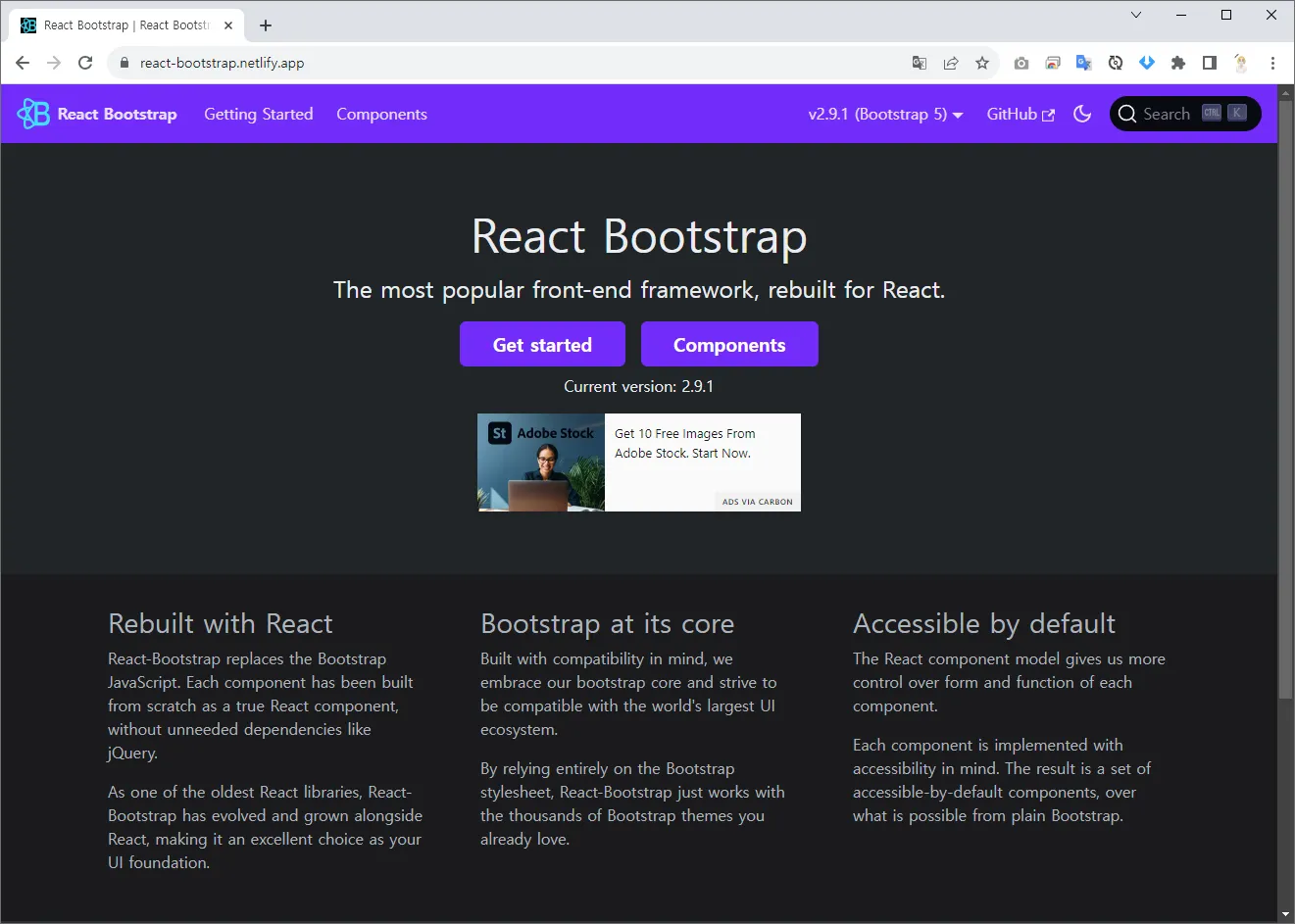 React ์ปดํฌ๋ํธ๋ก ๊ตฌํ๋ Bootstrap: Bootstrap์ ๋ค์ํ ๊ตฌ์ฑ ์์๋ฅผ React ์ปดํฌ๋ํธ๋ก ์ฌ์ฉํ ์ ์์ต๋๋ค.