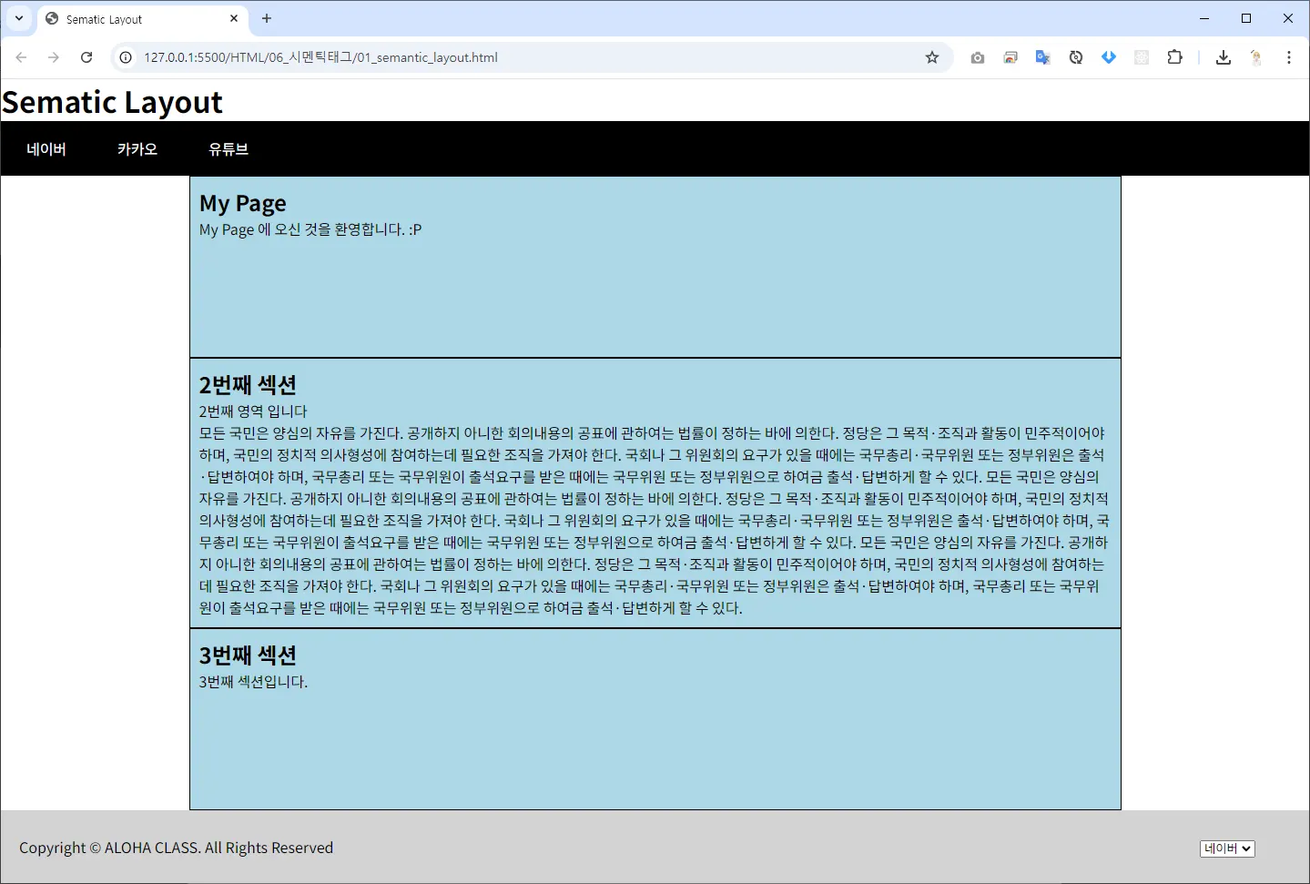 <body> <!-- ๋ณธ๋ฌธ ๋ด์ฉ : ํ๋ฉด์ ํ์๋๋ ์์ญ -->