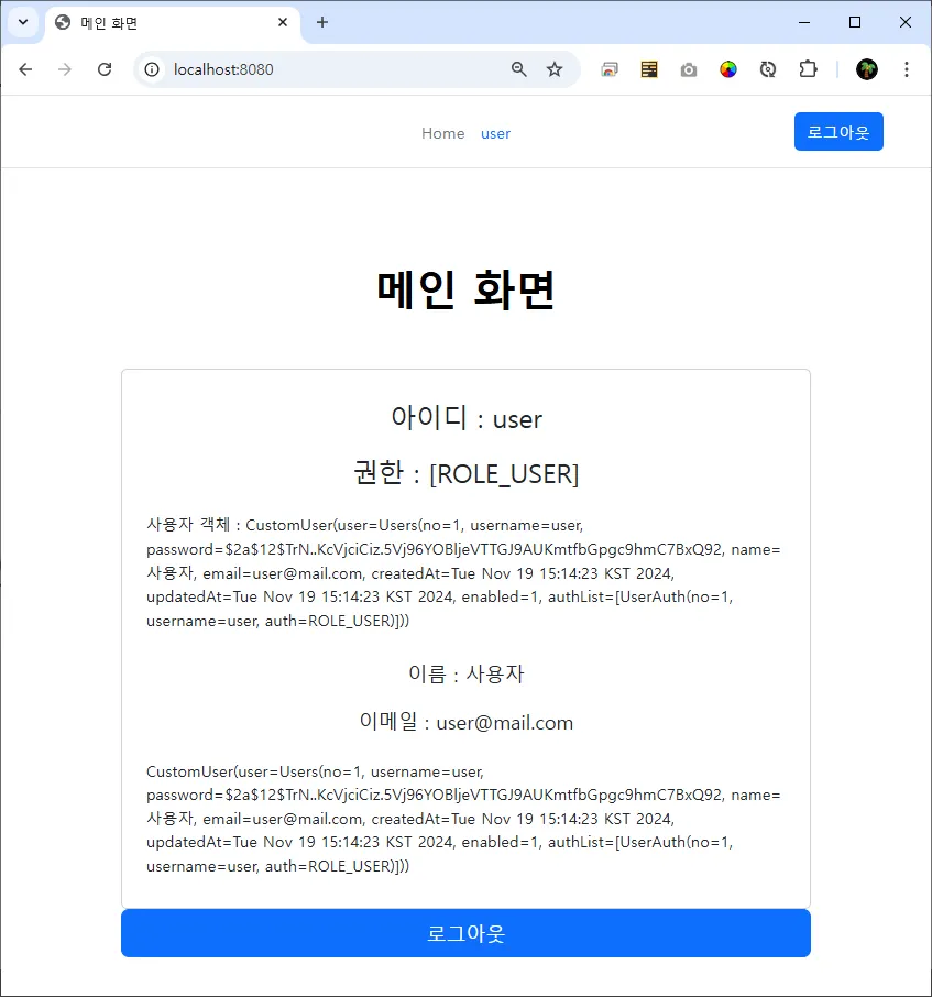 μ΄λ©μΌ : <span sec:authentication="principal.user.email"></span>