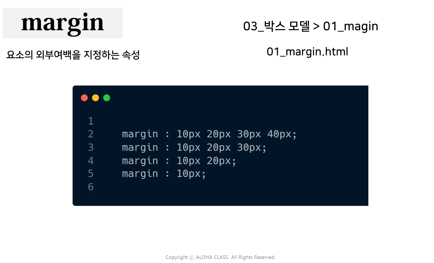 μμ: margin: 10px 20px 30px; β μ 10px, μ’μ° 20px, ν 30px.