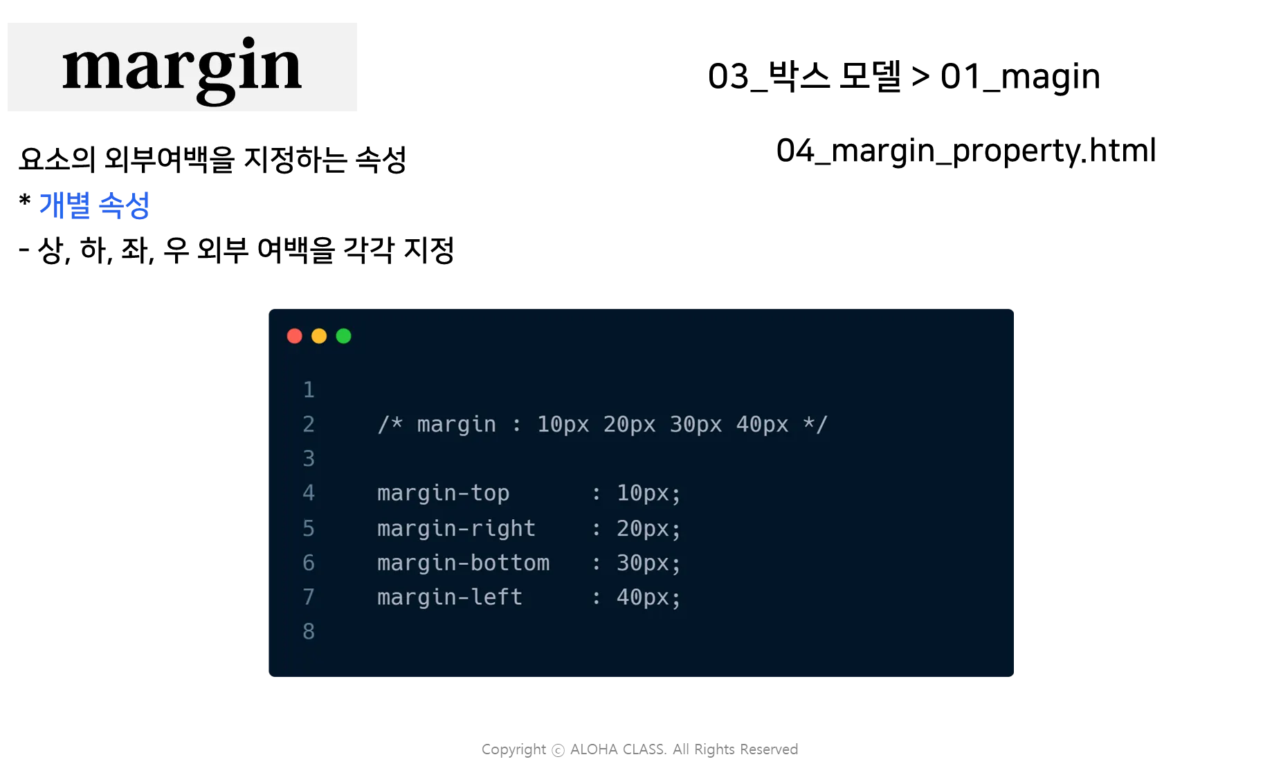 μμ: margin: 10px 20px 30px 40px; β μ 10px, μ° 20px, ν 30px, μ’ 40px.