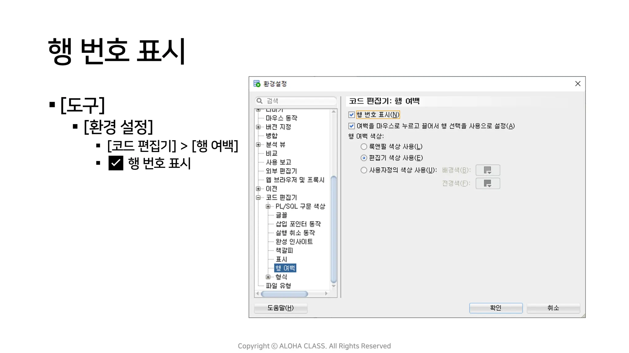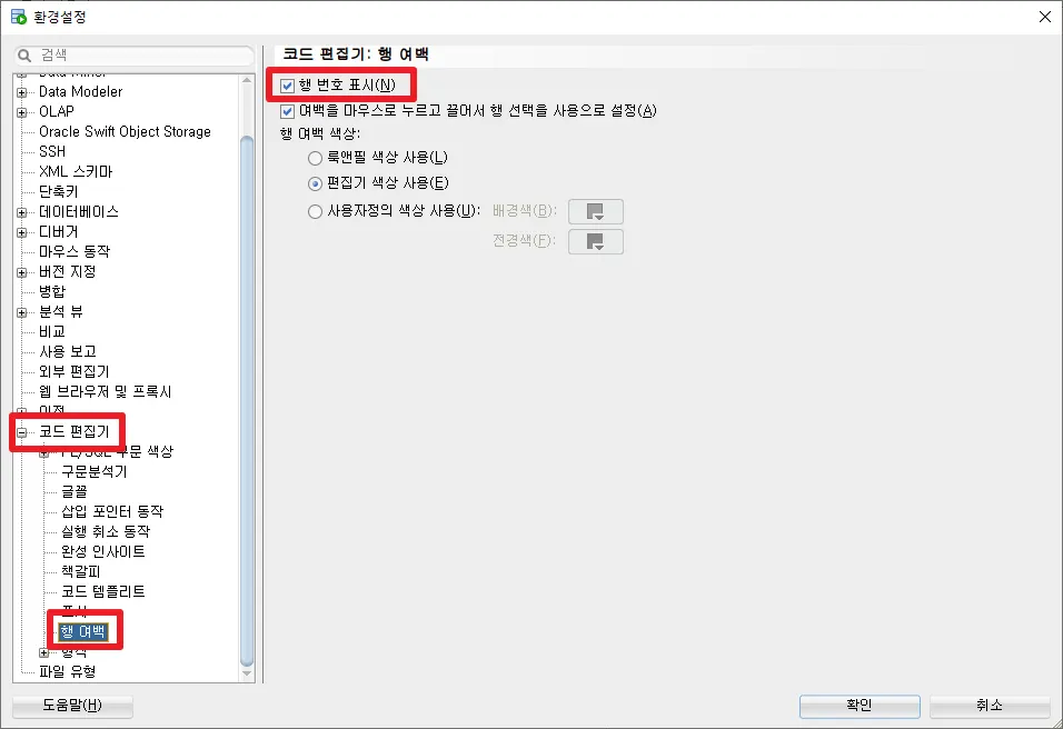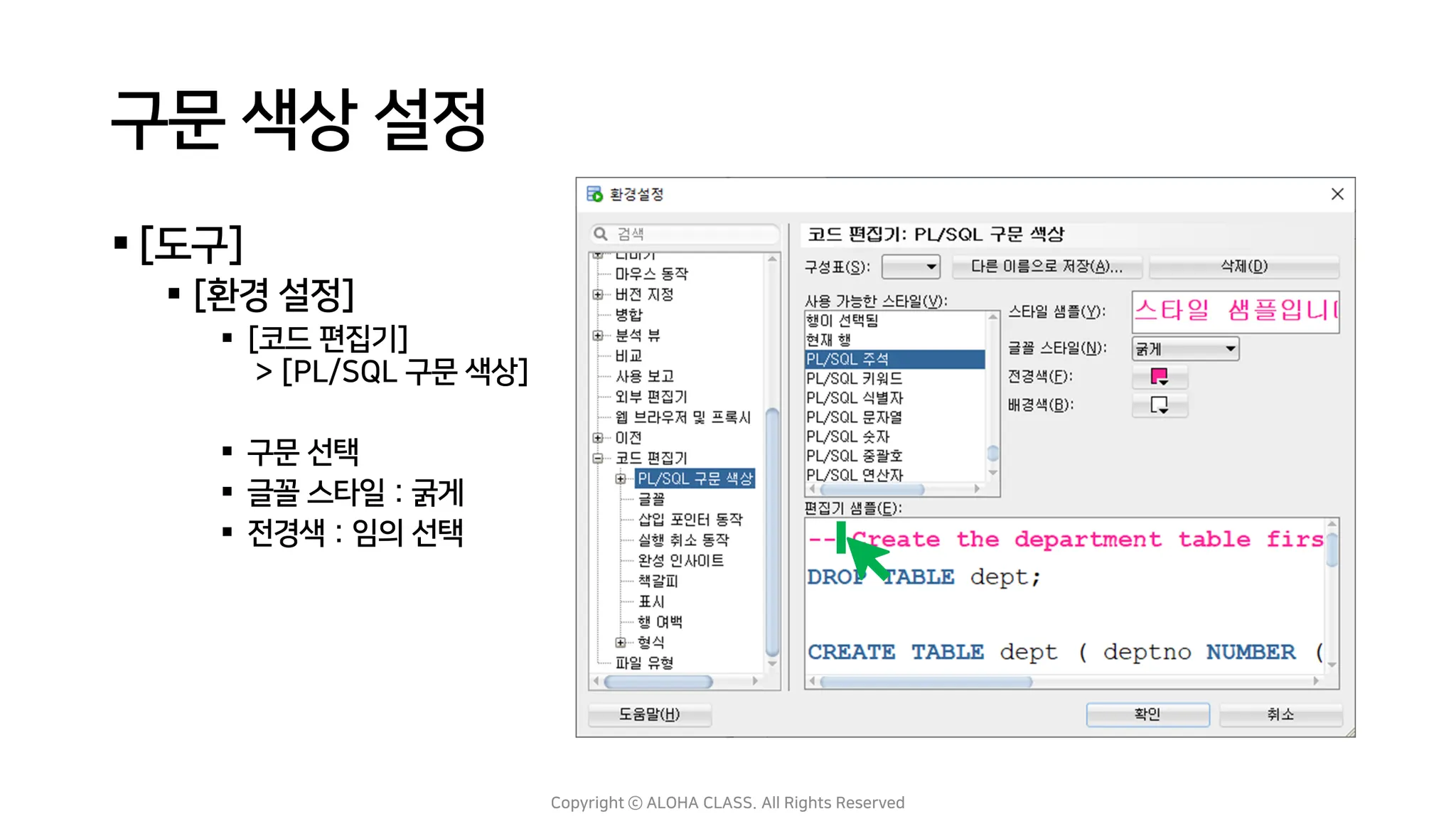 [코드 편집기] > [PL/SQL 구문 색상]
