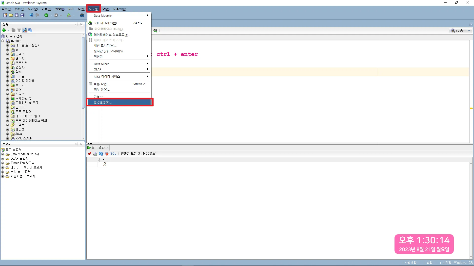 SQL Developer 기본 설정