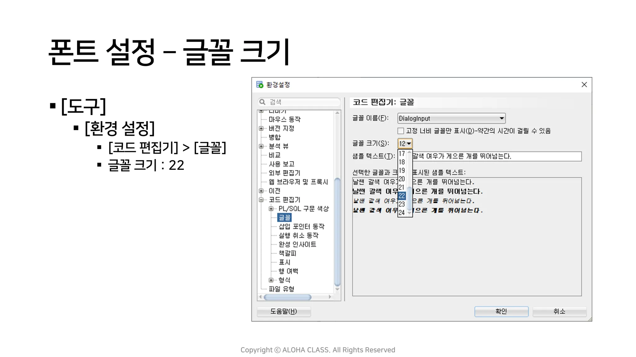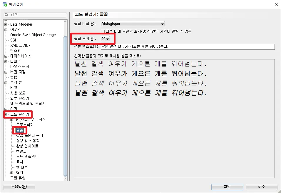 [코드 편집기] > [글꼴]
