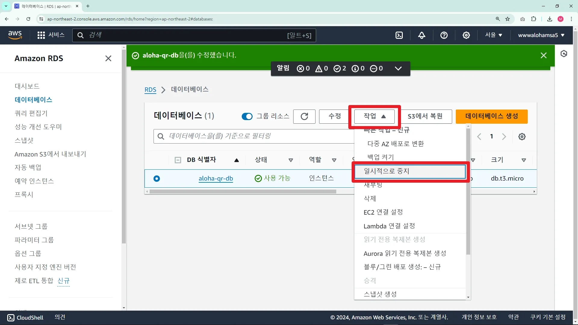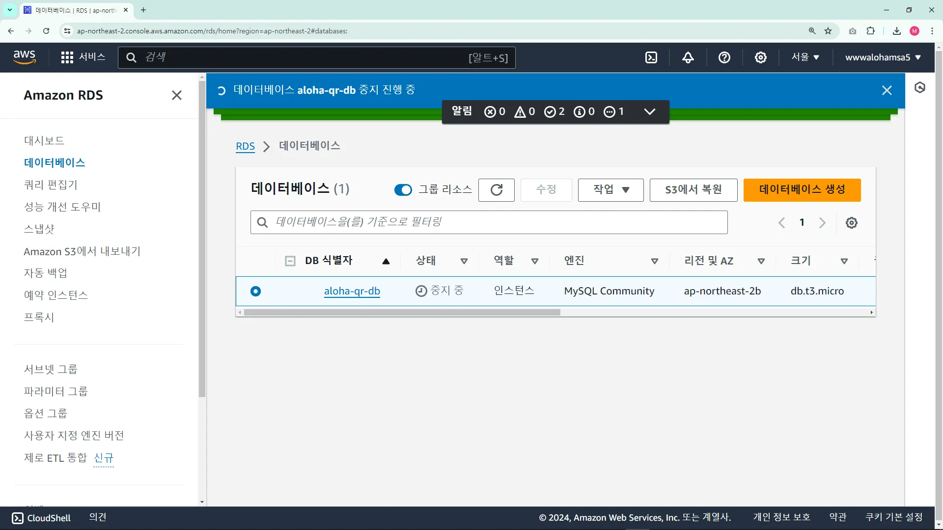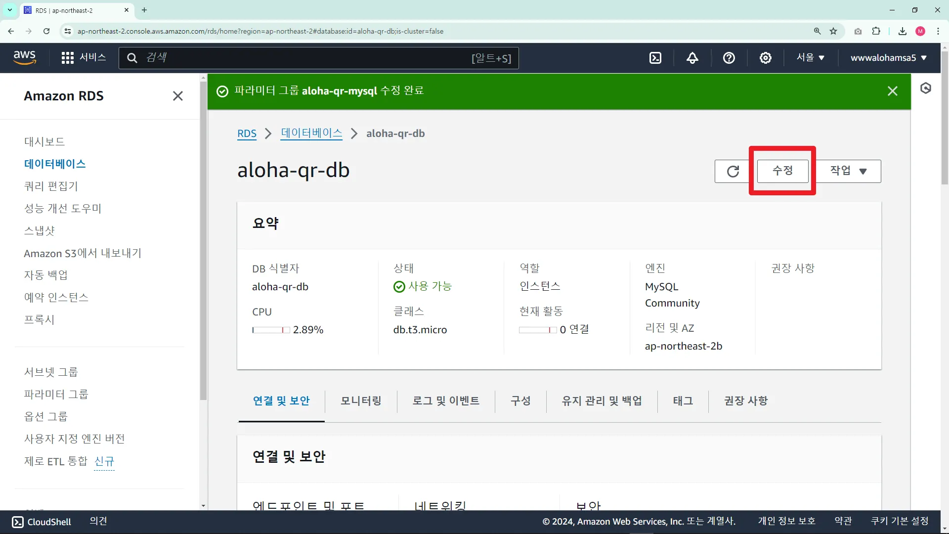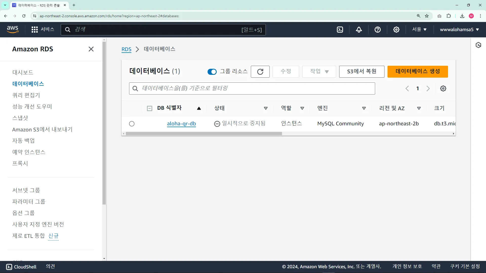 AWS RDS ์์ํ๊ธฐ