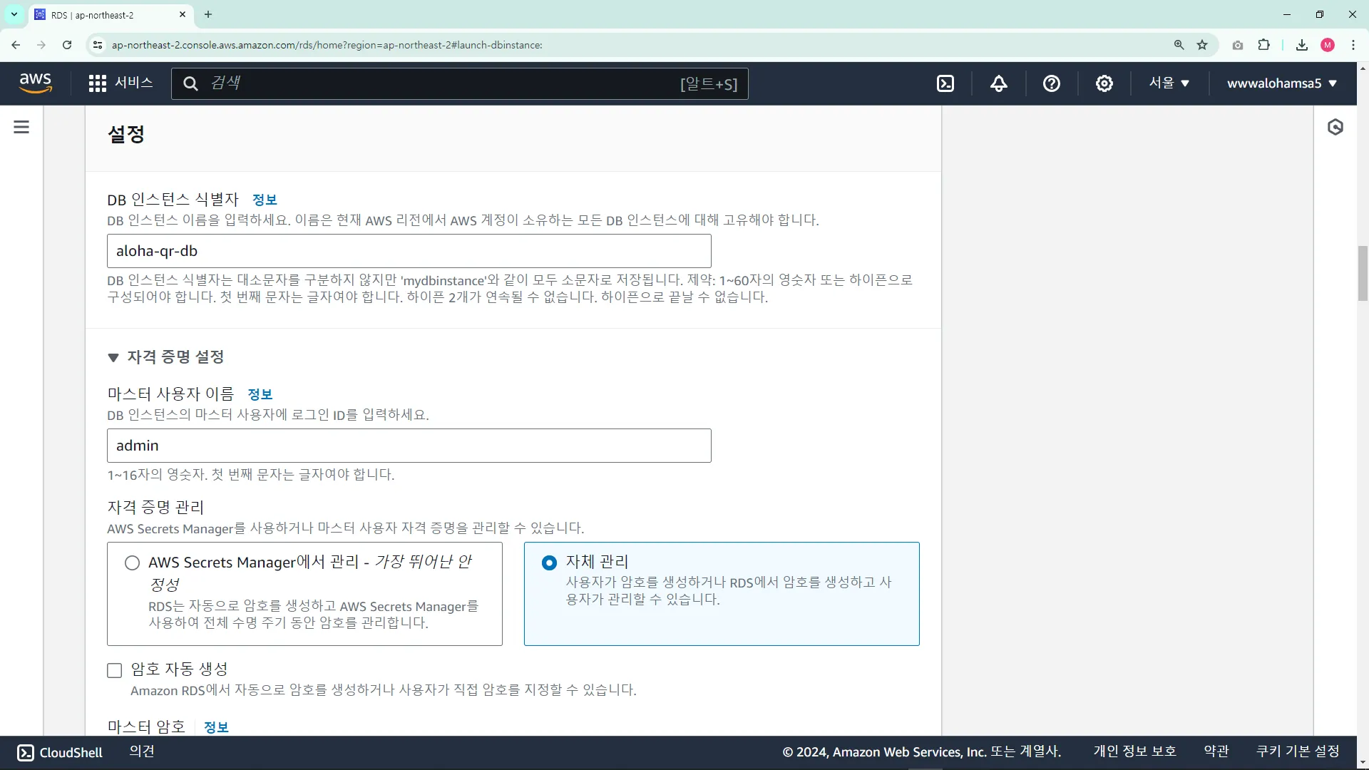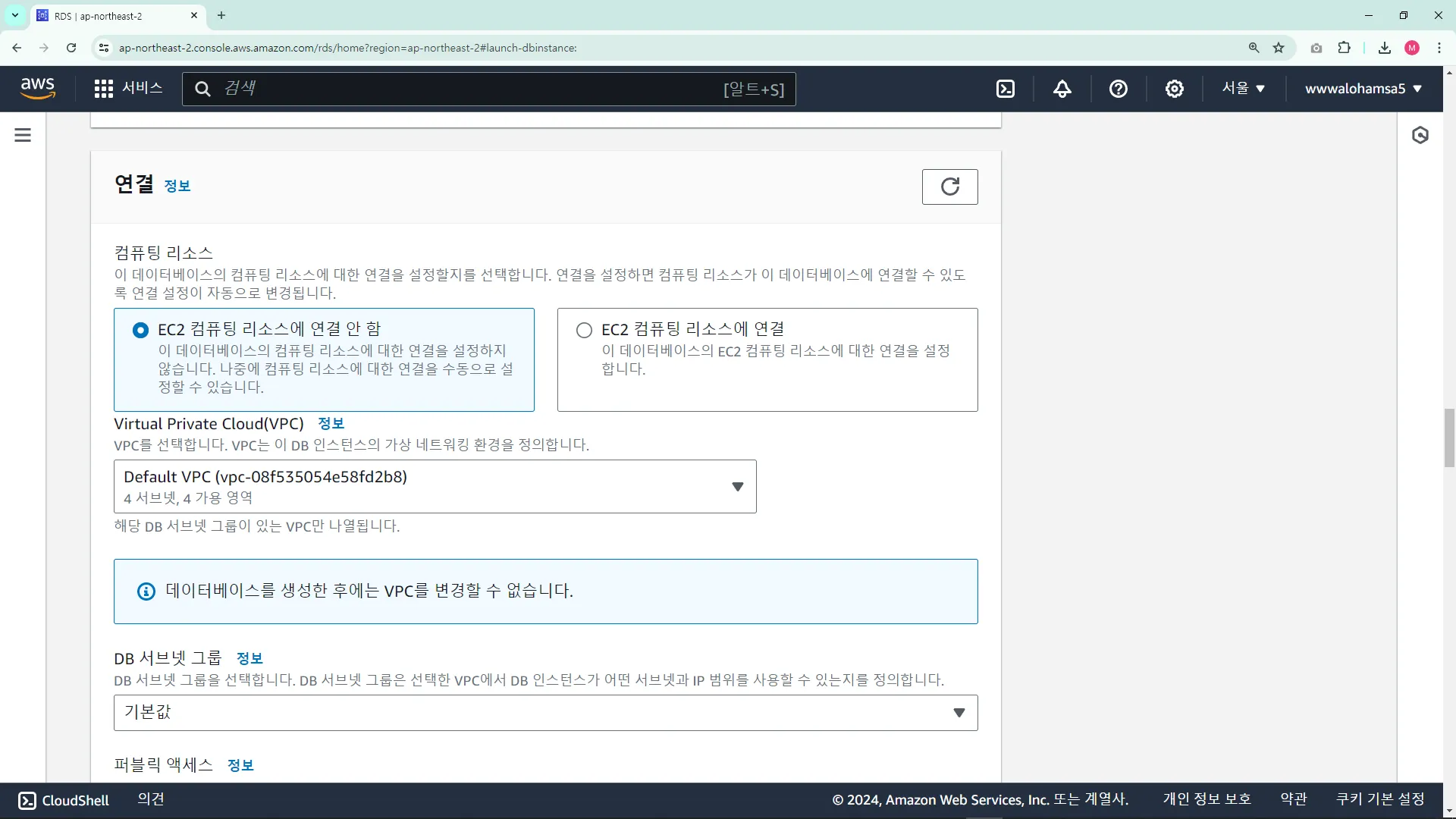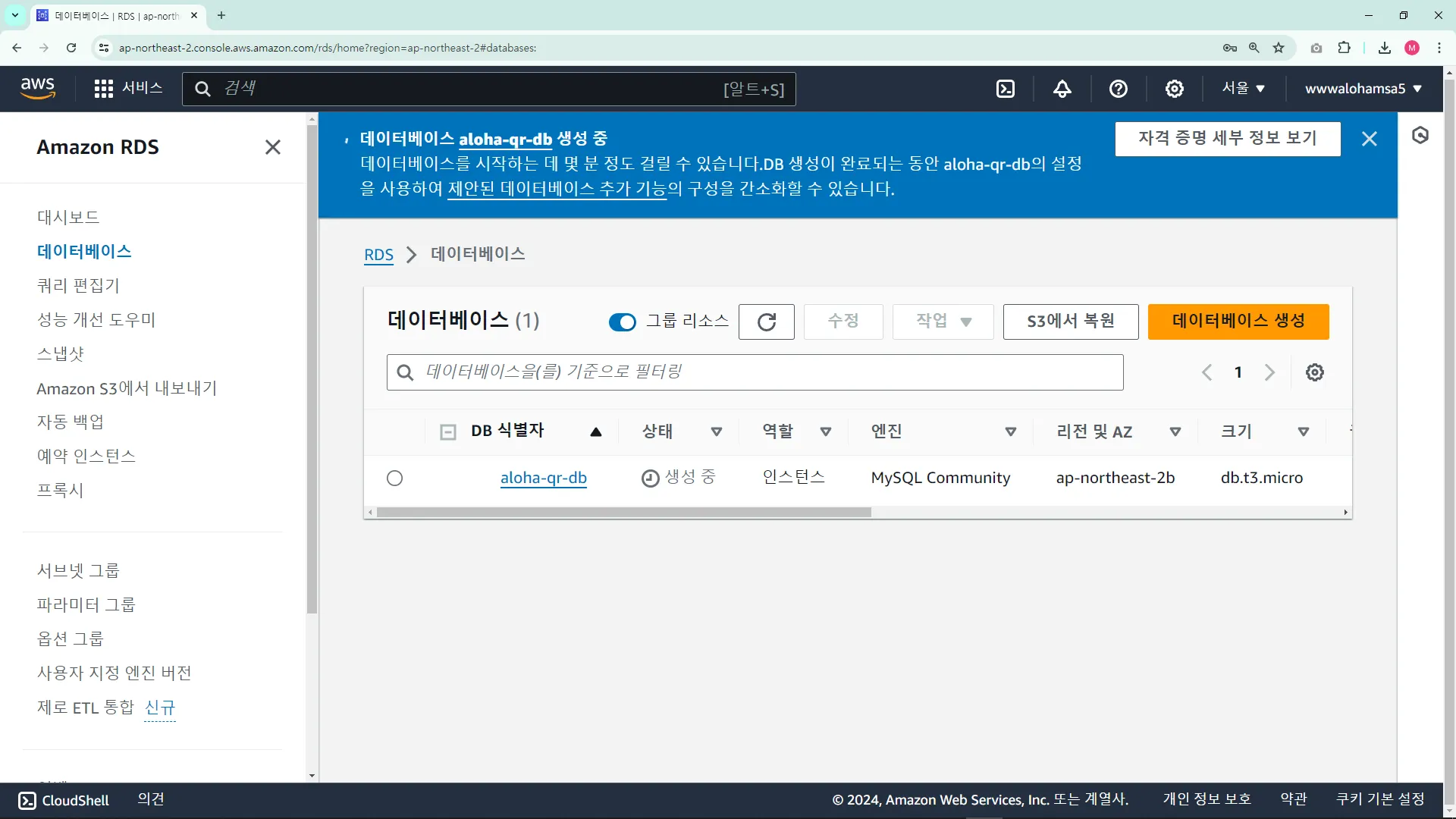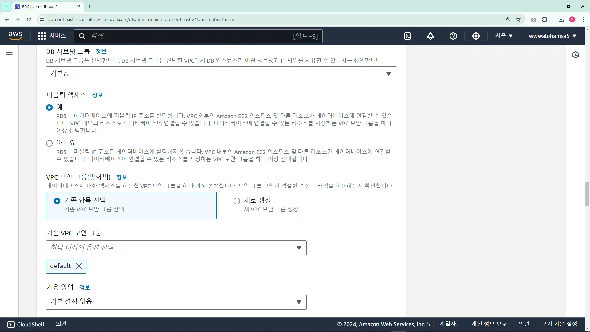 RDS ์ธ์คํด์ค ์์ฑ