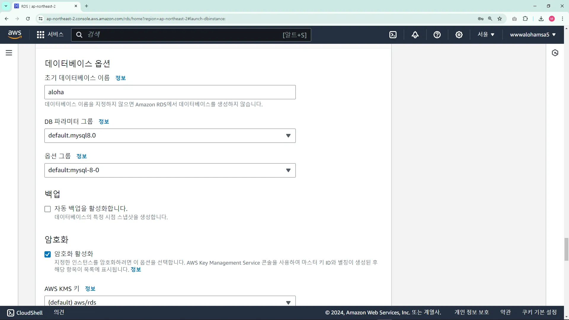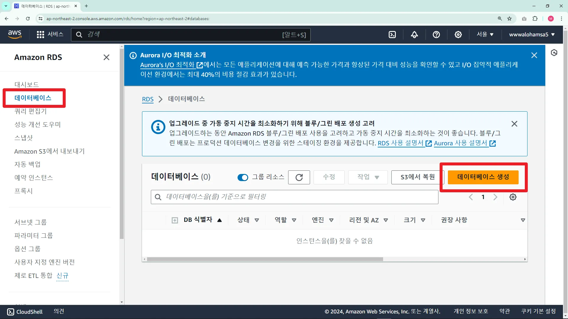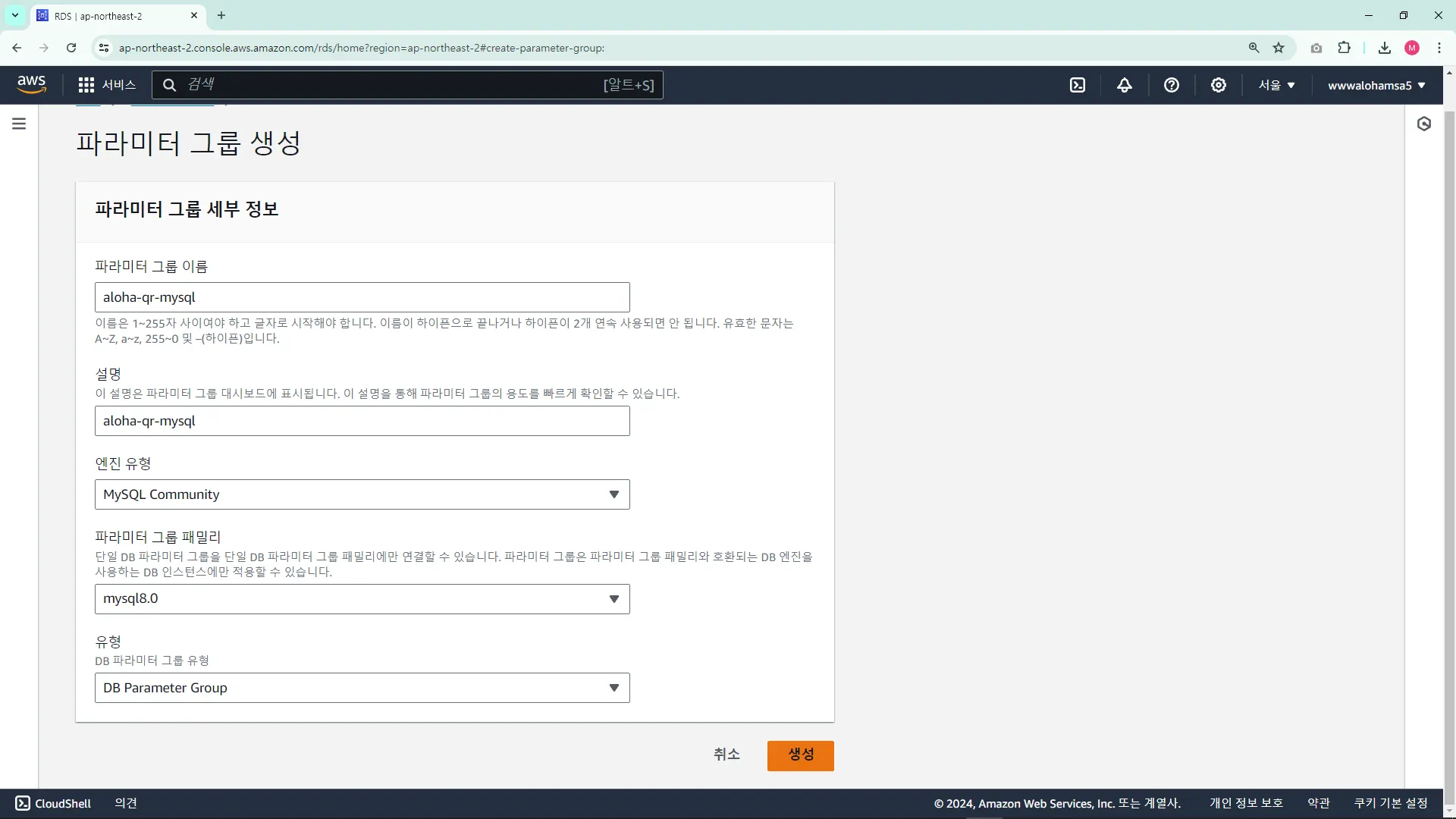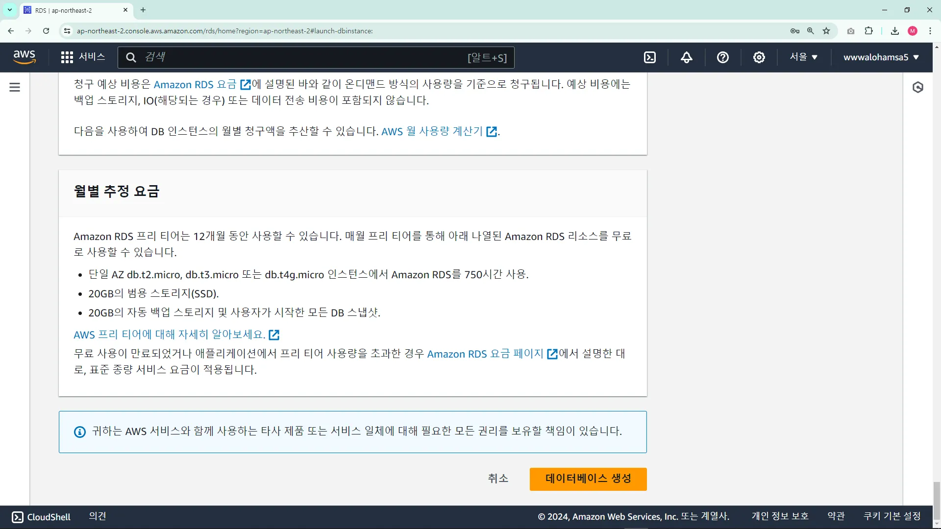 RDS ์ธ์คํด์ค ์์ฑ