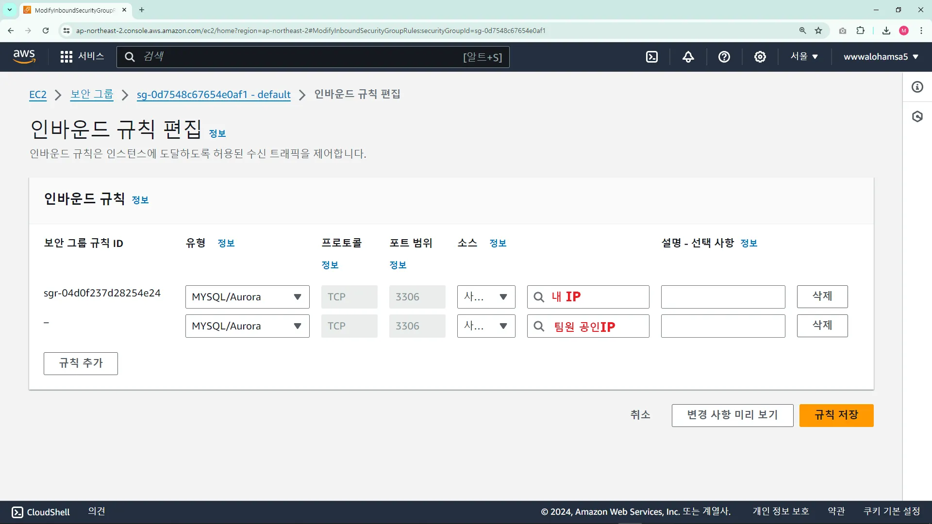 MySQL 3306 ํฌํธ ๋ด IP๋ง ํ์ฉ