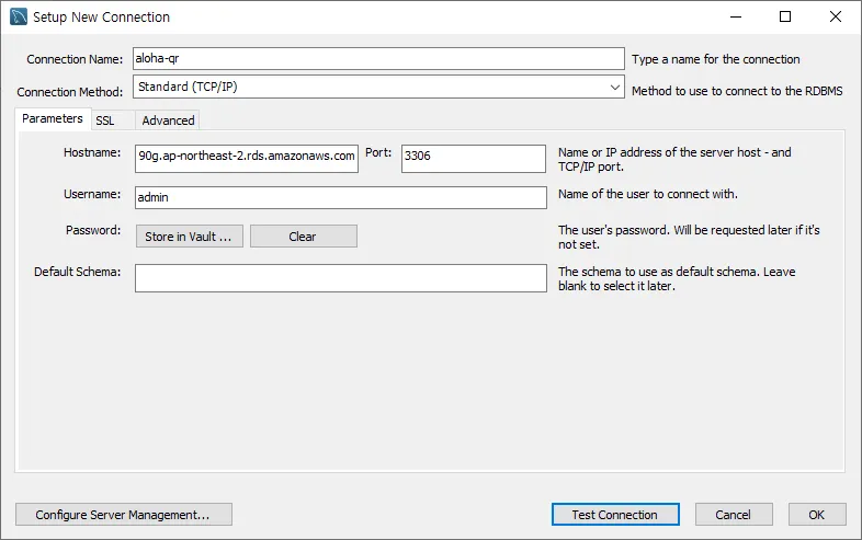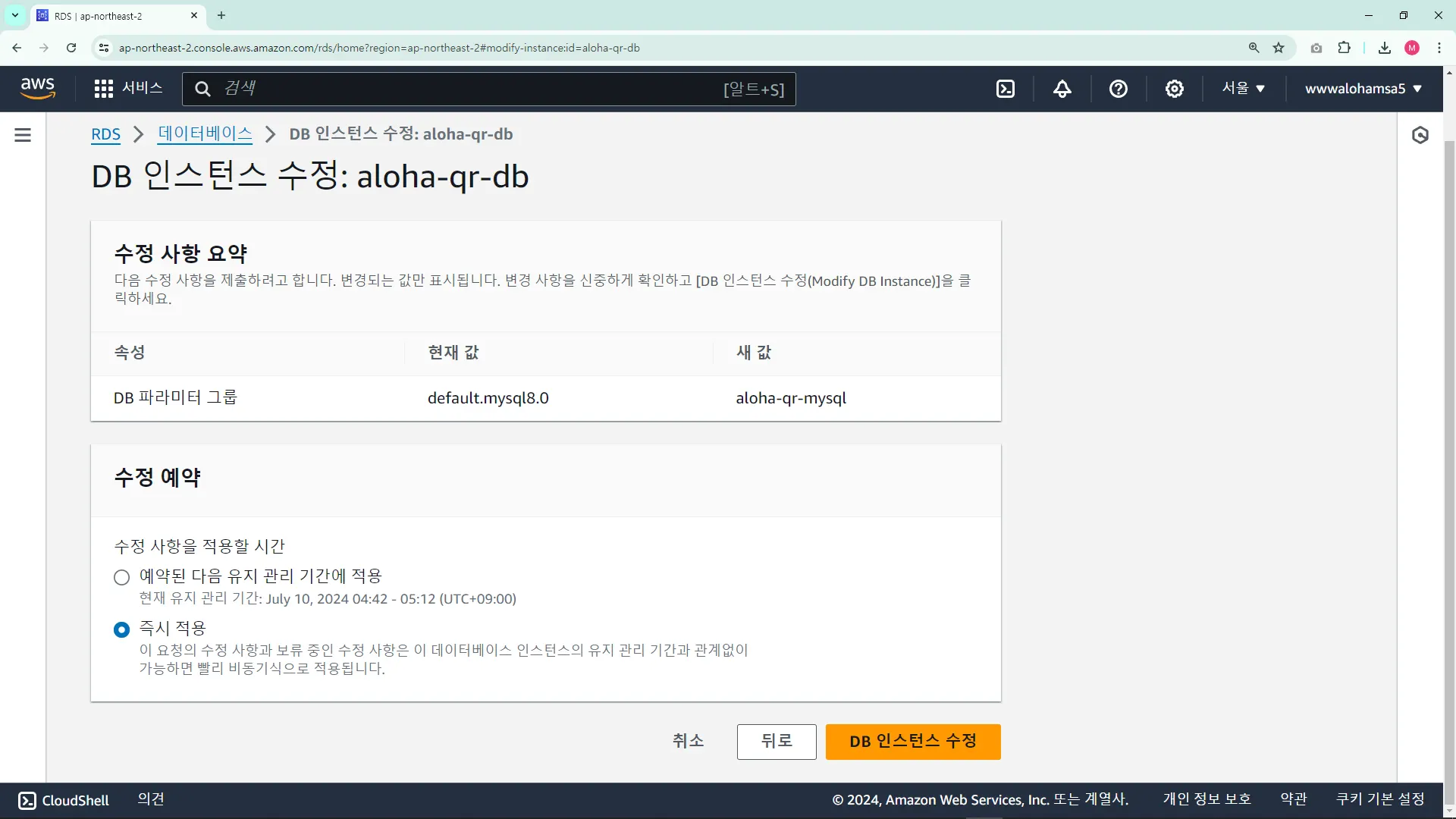 ์ธ์คํด์ค ์์ฑ ํ, RDS ์ ์ ์ํ์ฌ ์๋กญ๊ฒ ์์ฑํด๋ ์ข๋ค.