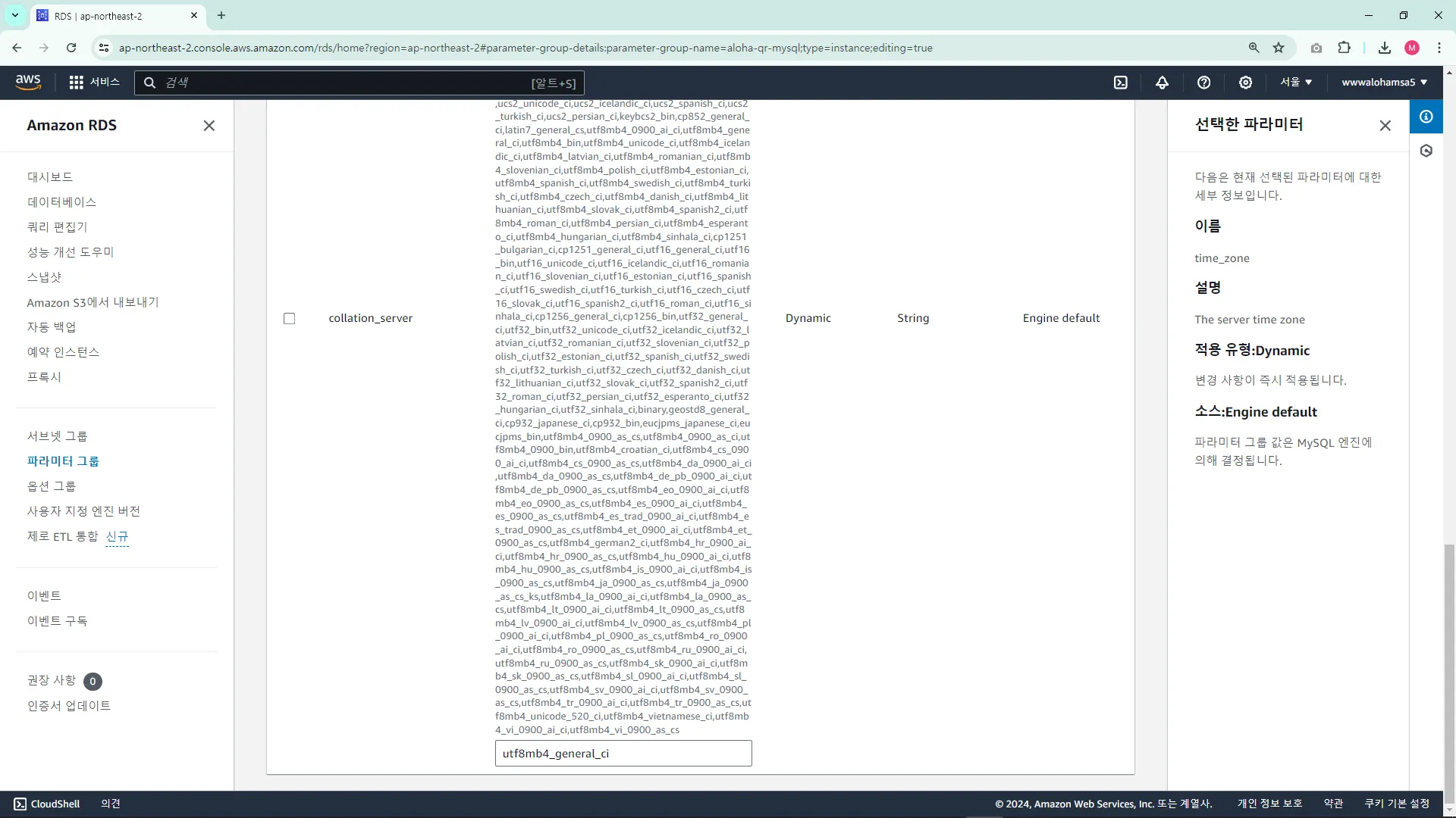 collation ํญ๋ชฉ์ uft8mb4_general_ci