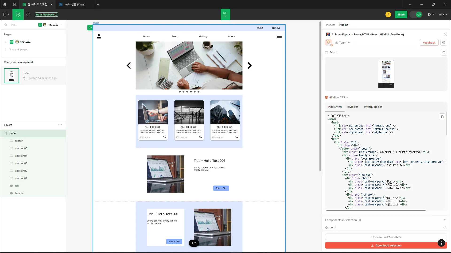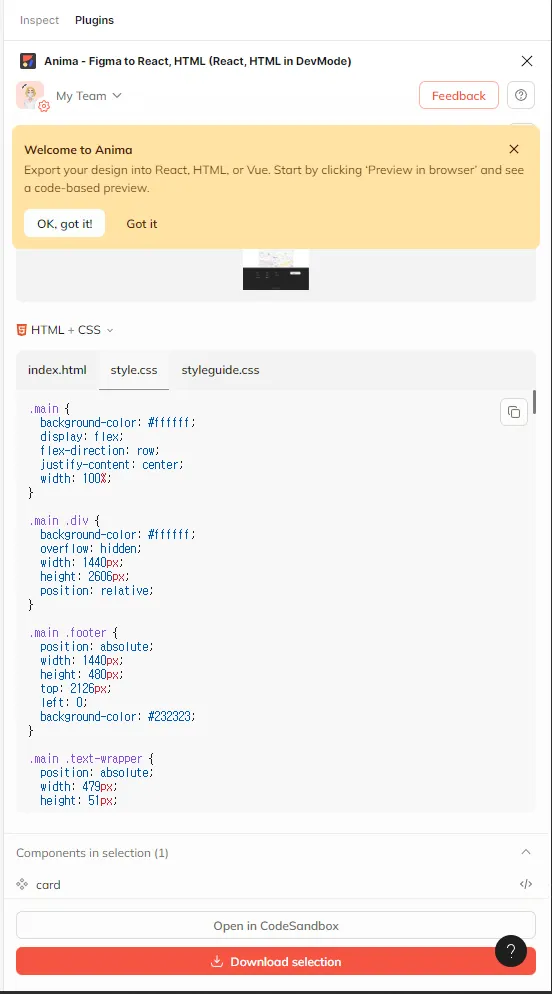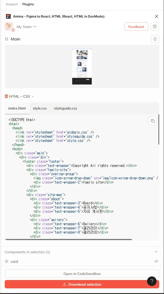 figma ๋์์ธ ํ์ผ์ anima ํ๋ฌ๊ทธ์ธ์ ์ด์ฉํ์ฌ, ์ฝ๋๋ก ๋ณํํ๊ธฐ