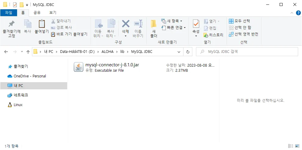์์ถ์ ํด์ ํ๊ณ ๋๋ฉด mysql-connector-j j๋ผ๊ณ ํ๋ JDBC ๋ผ์ด๋ธ๋ฌ๋ฆฌ๋ฅผ ๋ณผ ์๊ฐ ์์ต๋๋ค.