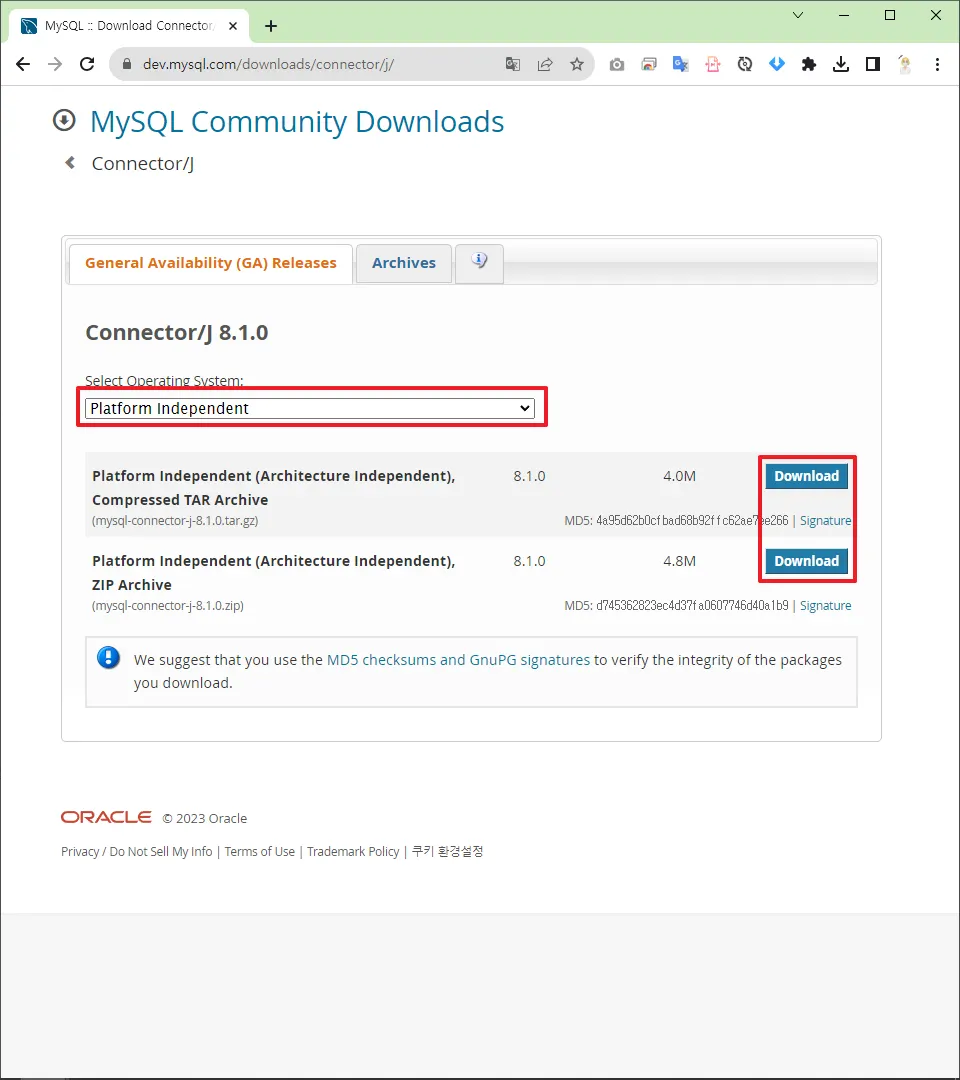 ํด๋น ์ฌ์ดํธ๋ก ์ด๋ํด์ Platform Independent ๋ฅผ ์ ํํ๊ณ ๋งฅ OS ํ๊ฒฝ์ ํ๋ฉด TAR ์์นด์ด๋ธ ์๋์ฐ OS ํ๊ฒฝ์ด๋ผ๋ฉด ZIP ์์นด์ด๋ธ๋ฅผ ์์ถํด์ ๋ฅผ ํ์๋ฉด ๋๊ฒ ์ต๋๋ค.