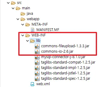 ๋ก๋ ๋ผ์ด๋ธ๋ฌ๋ฆฌ ํ์ผ์ธ commons-fileupload ์ commons-io ๋ค์ด๋ก๋ ๋ฐ์ ๋ผ์ด๋ธ๋ฌ๋ฆฌ ํด๋์ ์ถ๊ฐํด ์ค๋๋ค.