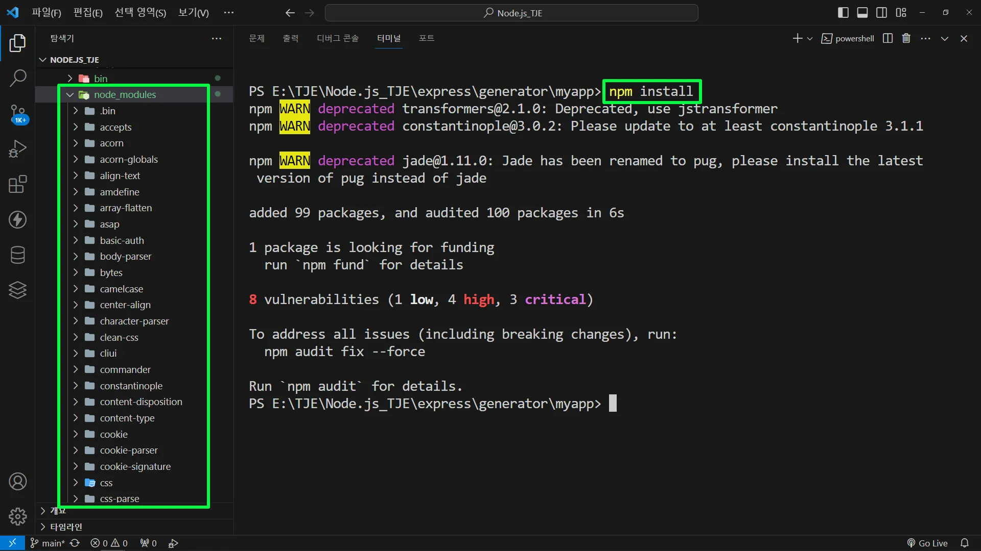νλ‘μ νΈ μμ± λͺ¨λ - express-generator